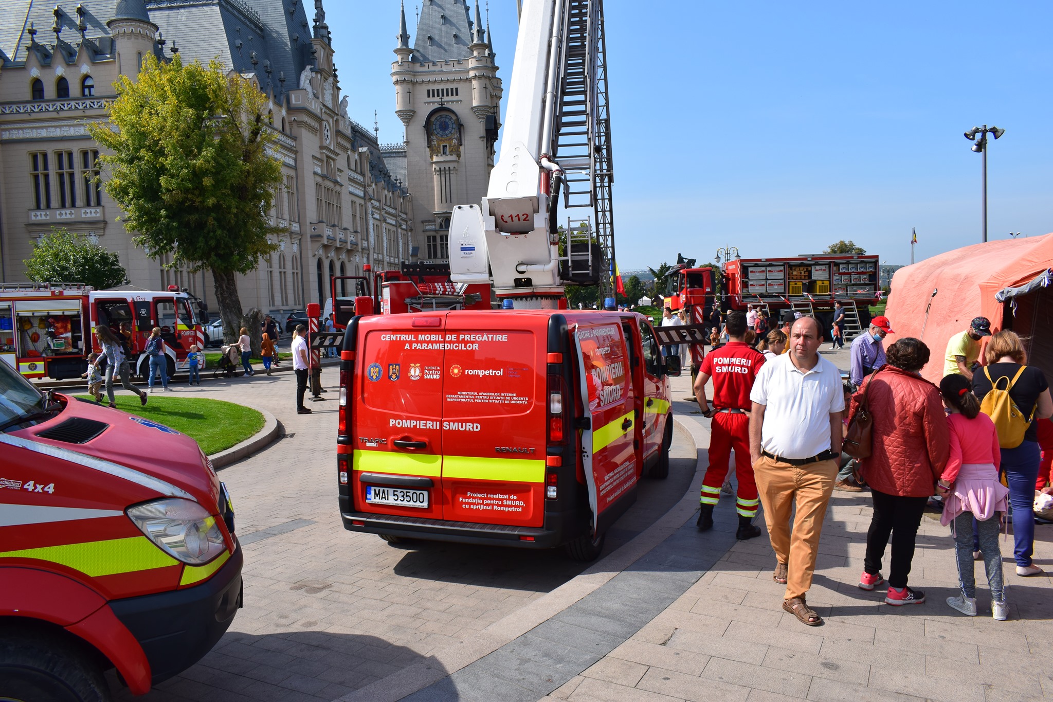 Pompierii ieșeni se află cu echipamentul din dotarea Inspectoratului și în fața Palatului Culturii unde au loc și demonstrații privind diverse tipuri de intervenție.