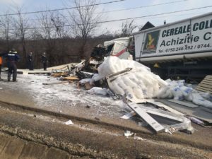 Accident cu trei autovehicule de mare tonaj pe DN 28, la Răducăneni (județul Iași). Trafic blocat pe ambele sensuri