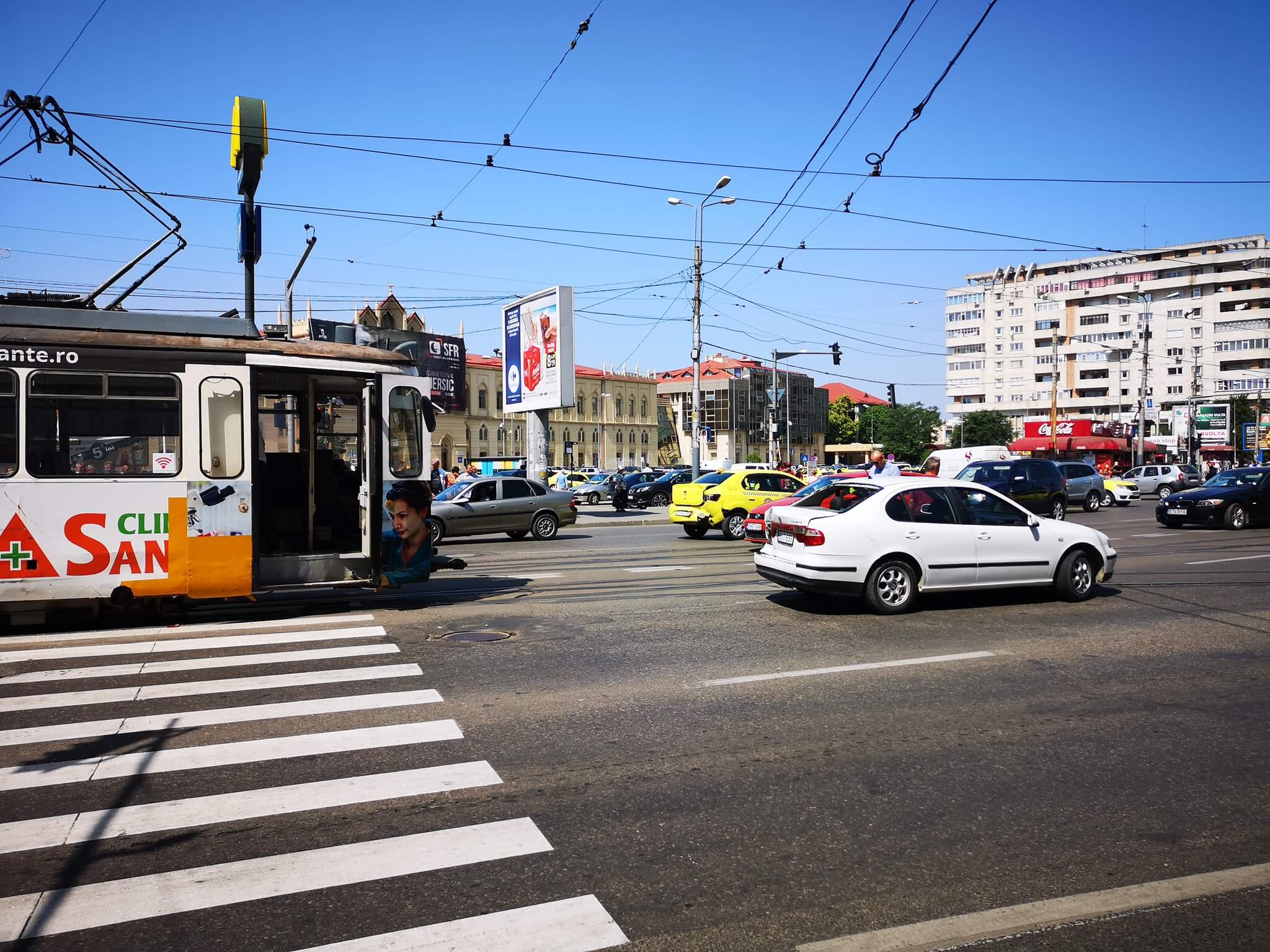 Un accident rutier s-a produs în urmă cu puțin timp în zona Gării din Iași. Un tramvai a lovit două autoturisme, dintre care unul de transport persoane în regim taxi.