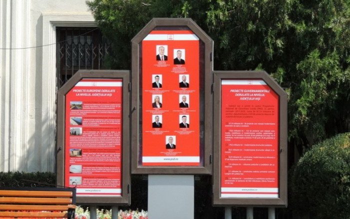 Cei trei senatori şi cinci deputaţi (rămaşi din şase), împreună cu preşedintele Organizaţiei PSD Iaşi zâmbesc iarăşi trecătorilor de pe Pietonal. Afişul cu fotografiile lor a fost înlocuit, după ce vechiul poster fusese stropit în mai multe rânduri cu vopsea, iar, în preajma zilei de 10 august, imaginile celor şase deputaţi ai partidului intraţi în Parlament după alegerile din 2016 au fost arse cel mai probabil cu flacăra unei brichete, scrie ziaruldeiasi.ro.