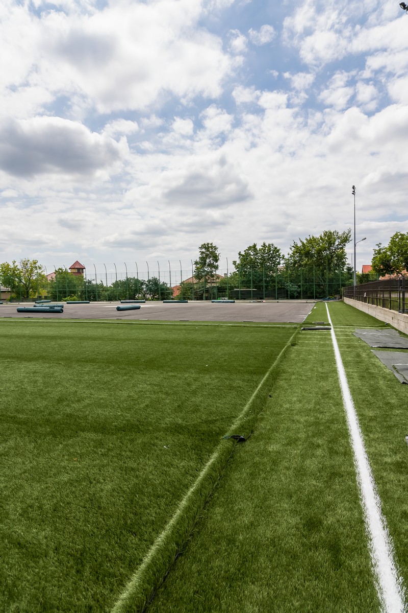 Lucrările de modernizare constau în decopertarea gazonului sintetic existent, montarea de gazon sintetic nou (cu granule de nisip și granule de cauciuc), precum și montarea a două seturi de porți de joc (cu plase) și a două bănci de rezerve (fiecare a câte 14 locuri).
