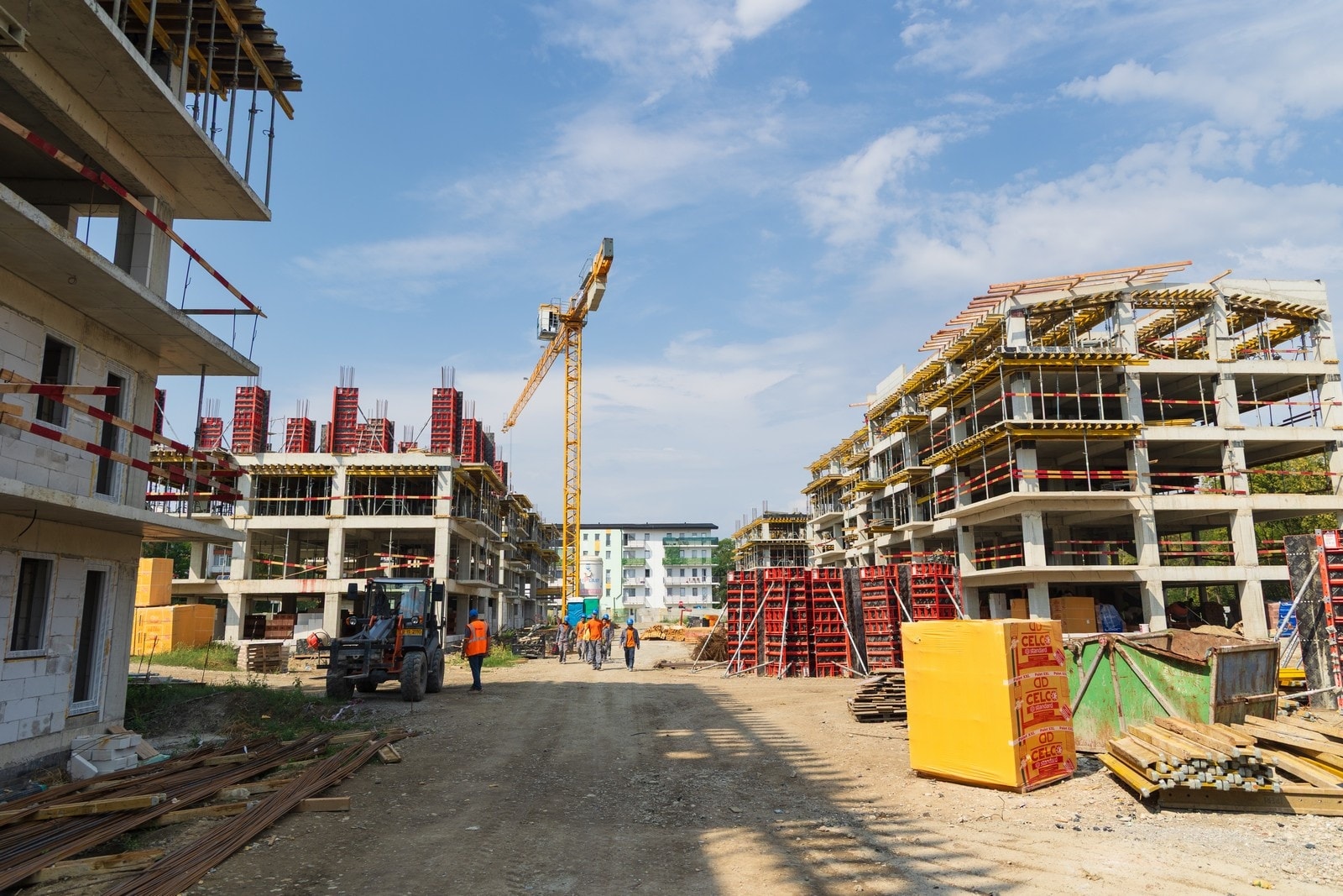 Se lucrează la construirea cadrelor și montarea planșeelor. Majoritatea tronsoanelor au trecut deja de trei niveluri, iar unele au ajuns la mansarde. Stadiul total al lucrărilor este de circa 35%.