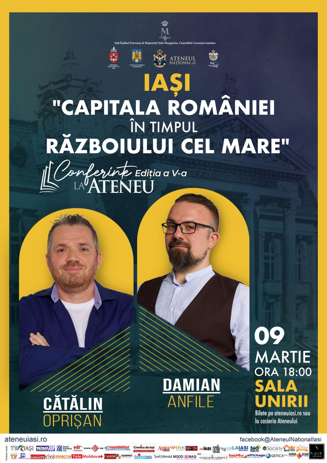 Ateneul Național din Iași are plăcerea de a anunța organizarea celei de-a V-a ediții a proiectului Conferințe la Ateneu, un eveniment cultural de excepție care va adresa un subiect de mare relevanță istorică: Iași – Capitala României în timpul Războiului cel Mare. Conferința va avea loc duminică, 9 martie 2025, începând cu ora 18:00, la Sala Unirii – Cinema Victoria.
