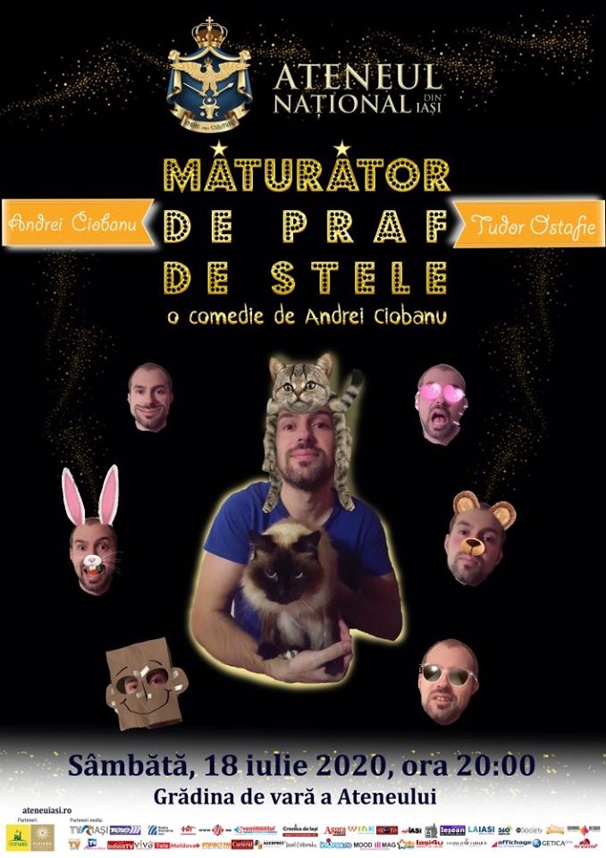 Serile de weekend sunt rezervate celor care vor să zâmbească. Astfel sâmbătă, 18 iulie, de la ora 20.00, în Grădina de vară a Ateneului, Andrei Ciobanu, după ce a reușit ca în ultimele trei sâmbete să aibă sold out la spectacolele sale, invită publicul să îl revadă în comedia „Măturător de praf de stele”. Spectatorii vor vedea pe viu șapte personaje care defilează în fața lor pe o scenă a vieții, o demonstrație de virtuozitate actoricească, ambalată într-o comedie spumoasă.