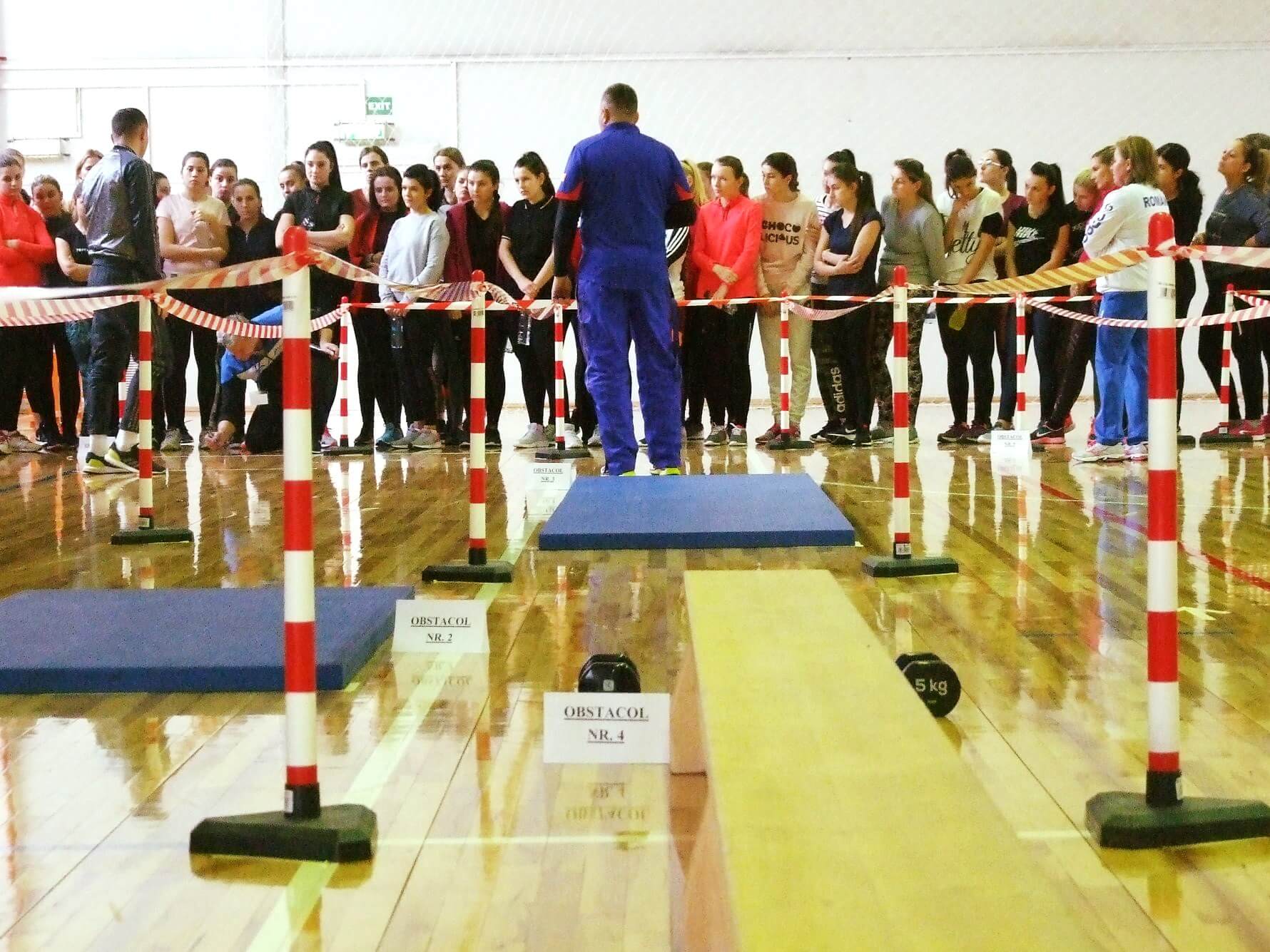 Obstacolul nr. 12 (Navetă 12 repetări x 20 de metri cu transport de jaloane)