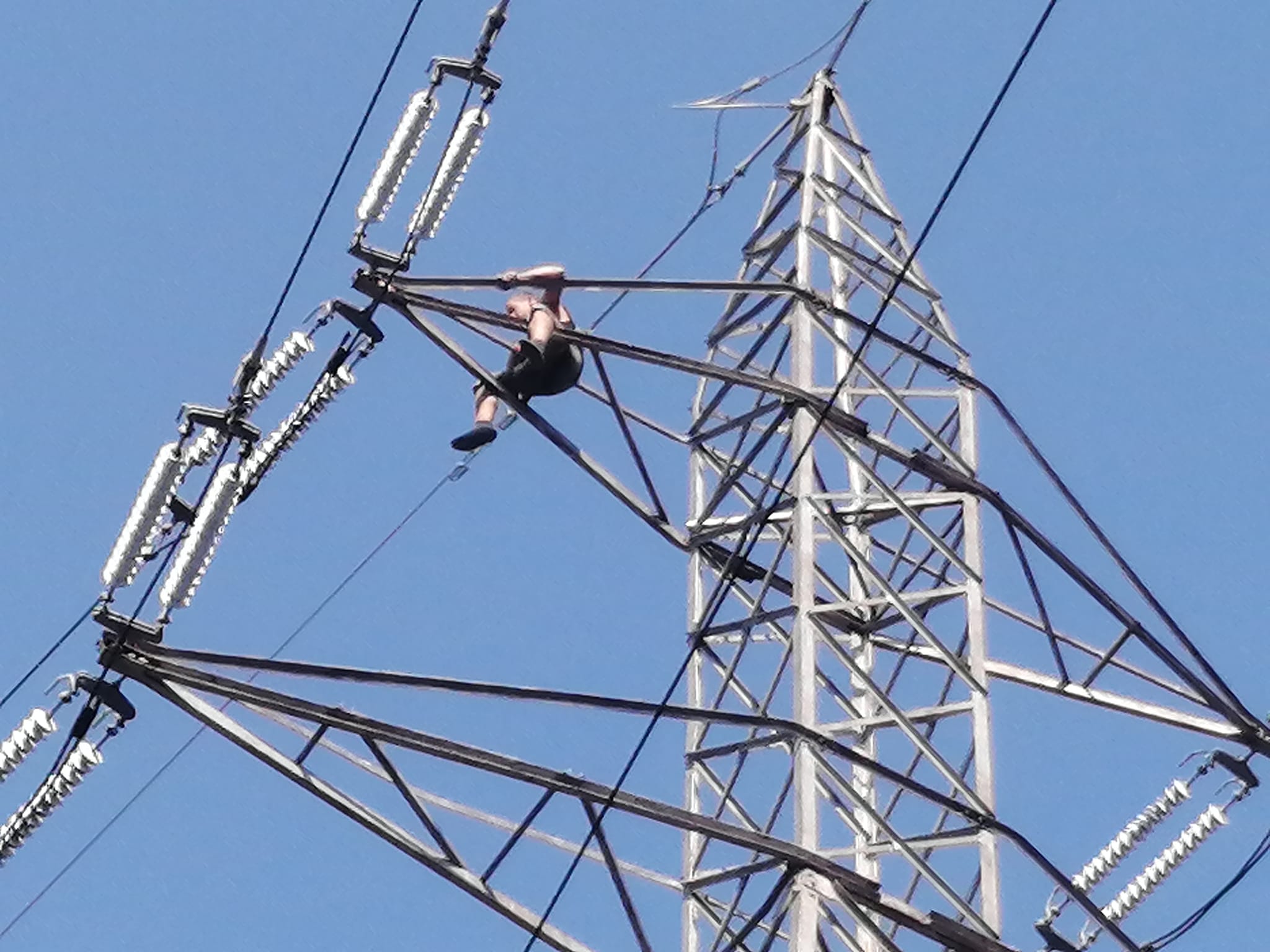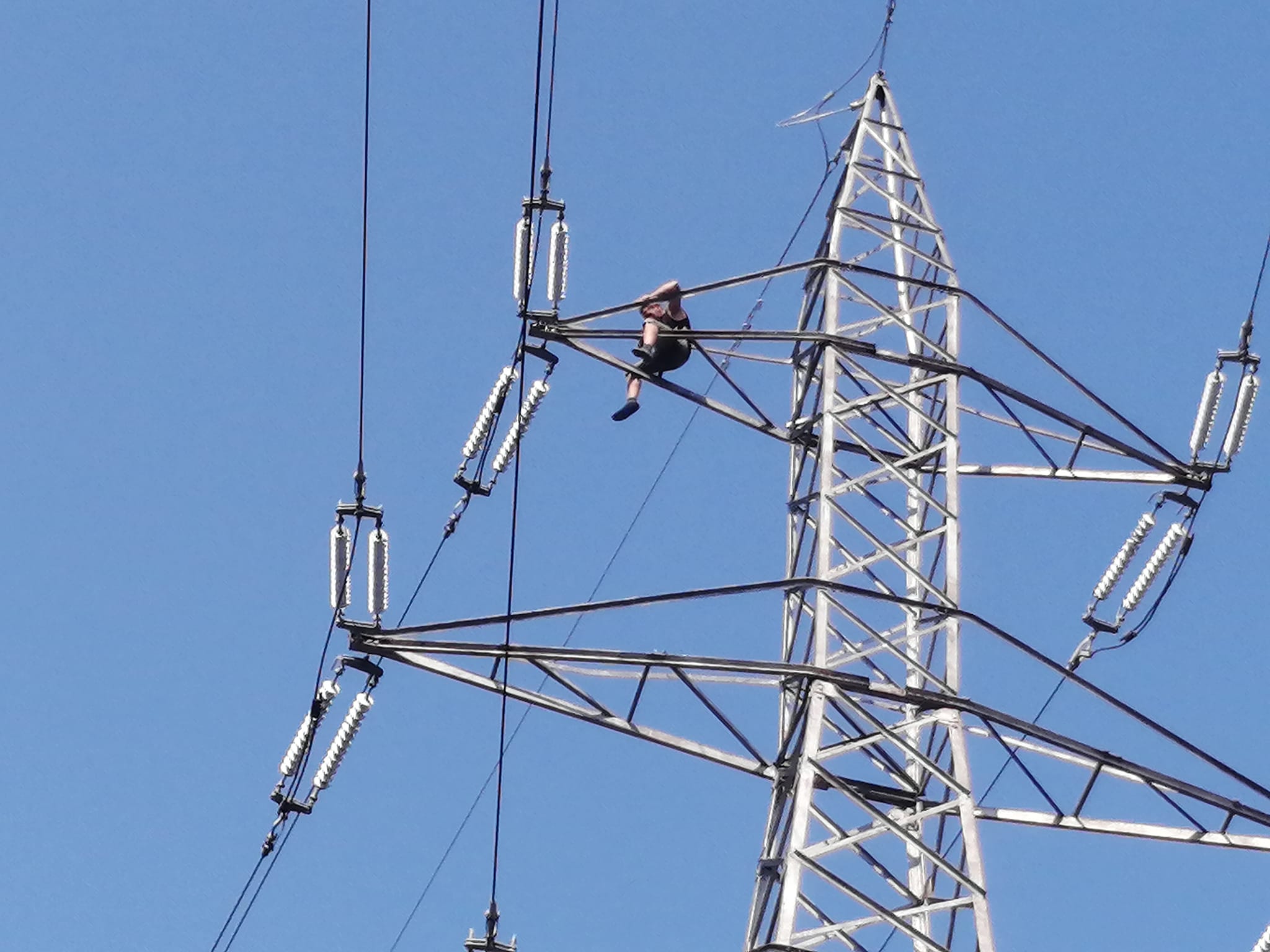 Un barbat s-a urcat pe un stâlp de înaltă tensiune în zona Alexandru cel Bun.