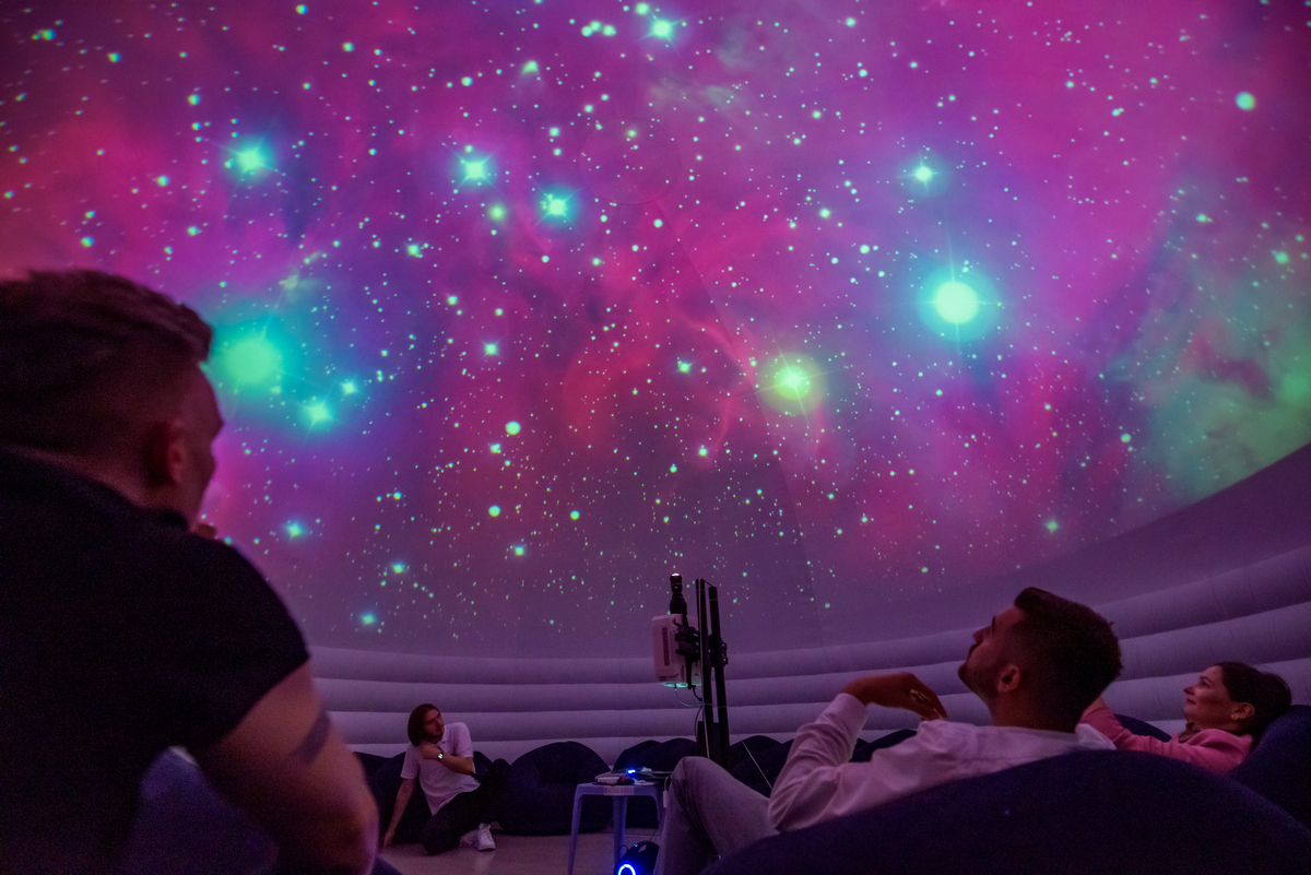 Cupola gonflabilă are un diametru de 8 metri și este dotată cu un proiector digital de planetariu. Scaunele sunt special gândite astfel încât să ofere confort și o vizionare panoramică a spectacolului memorabil.