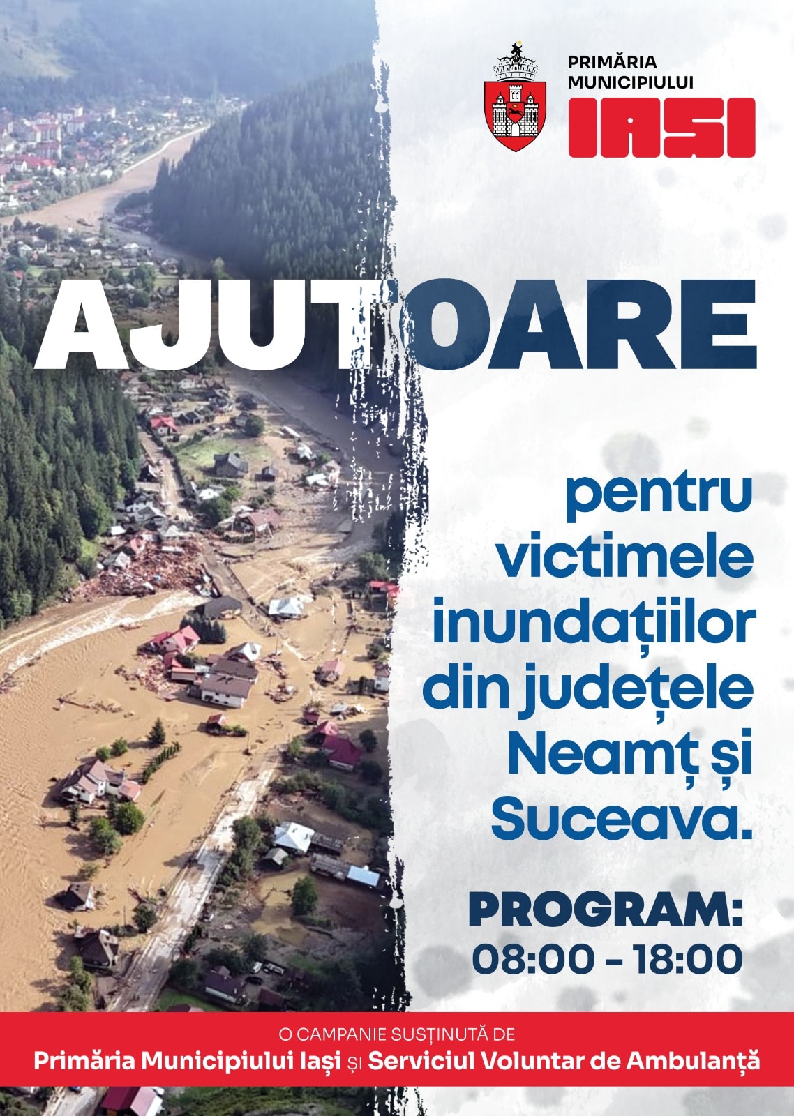 Primăria Municipiului Iași, la inițiativa primarului Mihai Chirica, lansează o campanie de sprijin pentru locuitorii grav afectați de inundațiile produse în județele Suceava și Neamț.