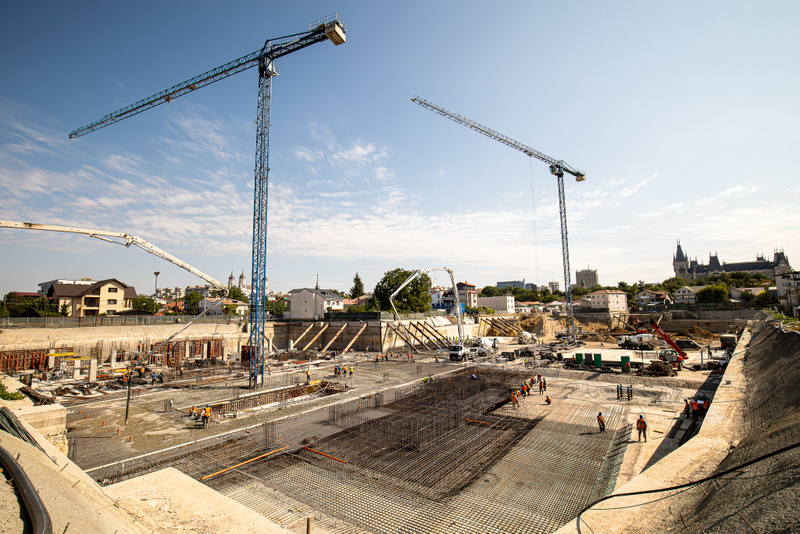 În contextul perioadei dificile cauzate de pandemie, macaralele își continuă ritmul alert pe șantierul Palas Campus. O simplă privire îți dezvăluie amploarea acestui proiect, iar cifrele sunt impresionante. Proiectul este format din șase corpuri diferite, care, în total, vor însuma o suprafață construită de peste 86.000 mp, cu o amprentă la sol de peste 15.000 mp. Ca o comparație, este echivalentul a aproximativ 57 terenuri de tenis. În total, construcția presupune 56.000 de metri cubi de beton, iar cantitatea totală de armătură va depăși 7.000 de tone. Până în prezent, s-a finalizat execuția pereților mulați și se lucrează la structura de rezistență. Lucrările de edificare sunt un imbold și pentru piața muncii din domeniul construcțiilor, fiind implicate pe șantier, la momentul actual, peste 300 de persoane simultan. Cele șase corpuri vor fi interconectate atât la parter, cât și la primele trei etaje, și vor avea înălțimi diferite, care pot ajunge până la maximum șase etaje.