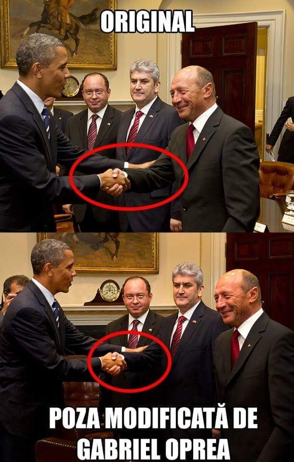 Fotografia a fost realizată în anul 2015, în cadrul unei vizite oficiale la Washington DC, loc unde au semnat Acordul dintre România și SUA pentru intensificarea cooperării în prevenirea și combaterea infracțiunilor. Gabriel Oprea a publicat o serie de fotografii pe Facebook, însă una a atras atenția tuturor, fiindcă se poate observa cu ochiul liber că este un trucaj foto, potrivit click.ro.