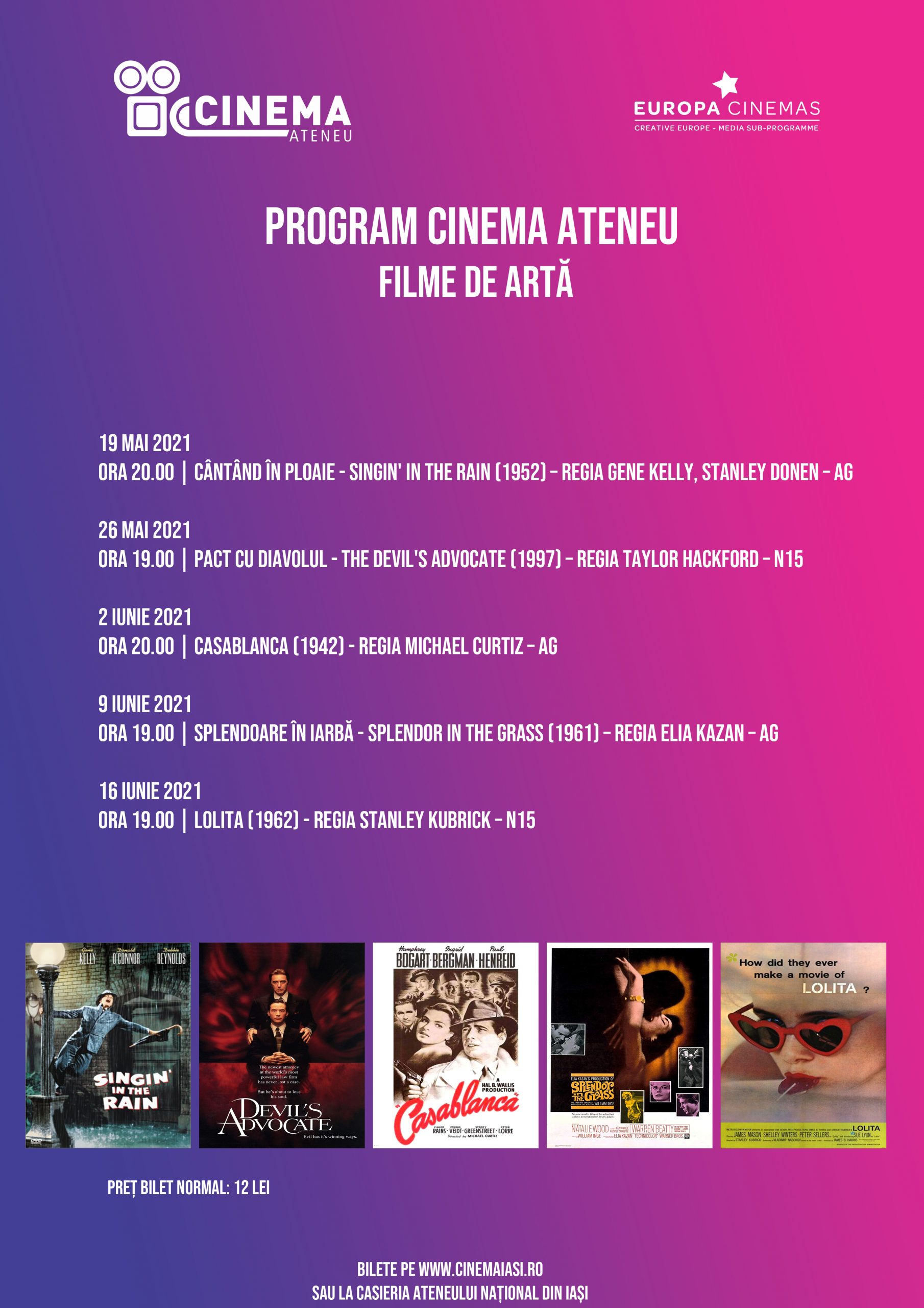 Din luna mai, cele mai cunoscute capodopere ale cinematografiei vor rula pe ecranul de la Cinema Ateneu, iar ieșenii se vor putea bucura de filme care au schimbat istoria cinematografiei.