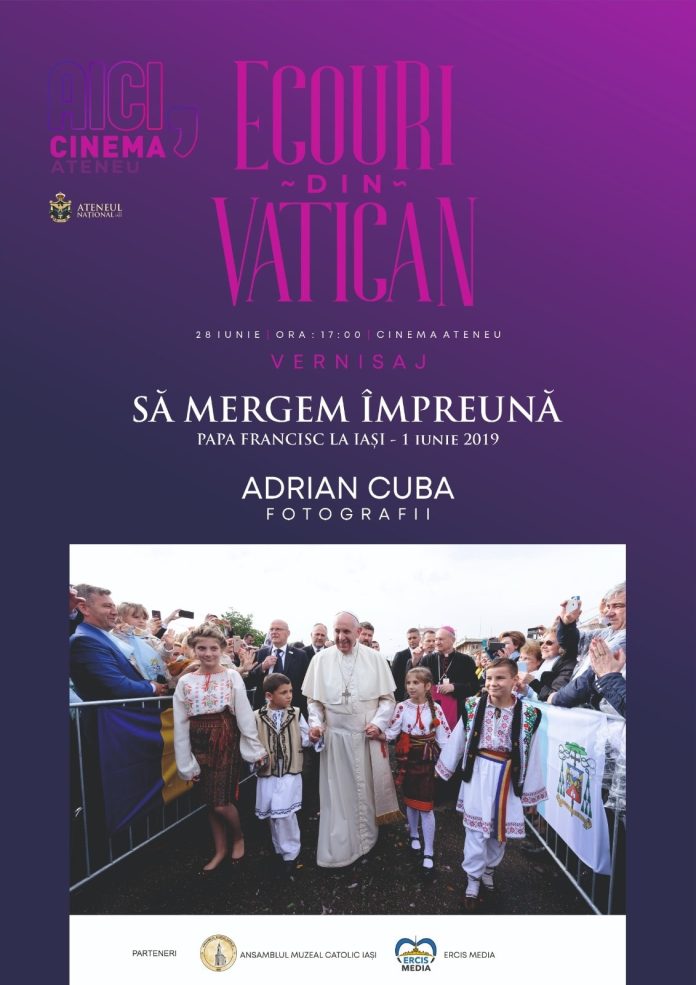 Sâmbătă, 28 iunie, de la ora 17:00, va avea loc vernisajul expoziției „Să mergem împreună – Papa Francisc la Iași”, ce reunește fotografii semnate de Adrian Cuba. Expoziția este realizată în parteneriat cu Ansamblul Muzeal Catolic Iași și ERCIS Media.