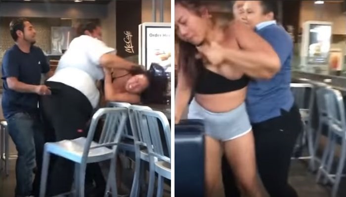 În partea a doua a filmului, apare momentul în care începe bătaia, după ce clienta aruncă un milkshake în direcția angajatei. În timp ce angajații Mc Donald’s intervin, clienta ia o tavă de metal și o lovește pe adversară în cap. Atunci, angajații o prind de păr și se năpustesc cu pumni asupra ei.