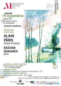 Vineri, 19 noiembrie 2021, ora 19,00, orchestra simfonică a Filarmonicii „Moldova” din Iași va susține la Casa de Cultura a Studentilor Iasi, un concert simfonic sub bagheta dirijorului ALAIN PÂRIS (Franța).