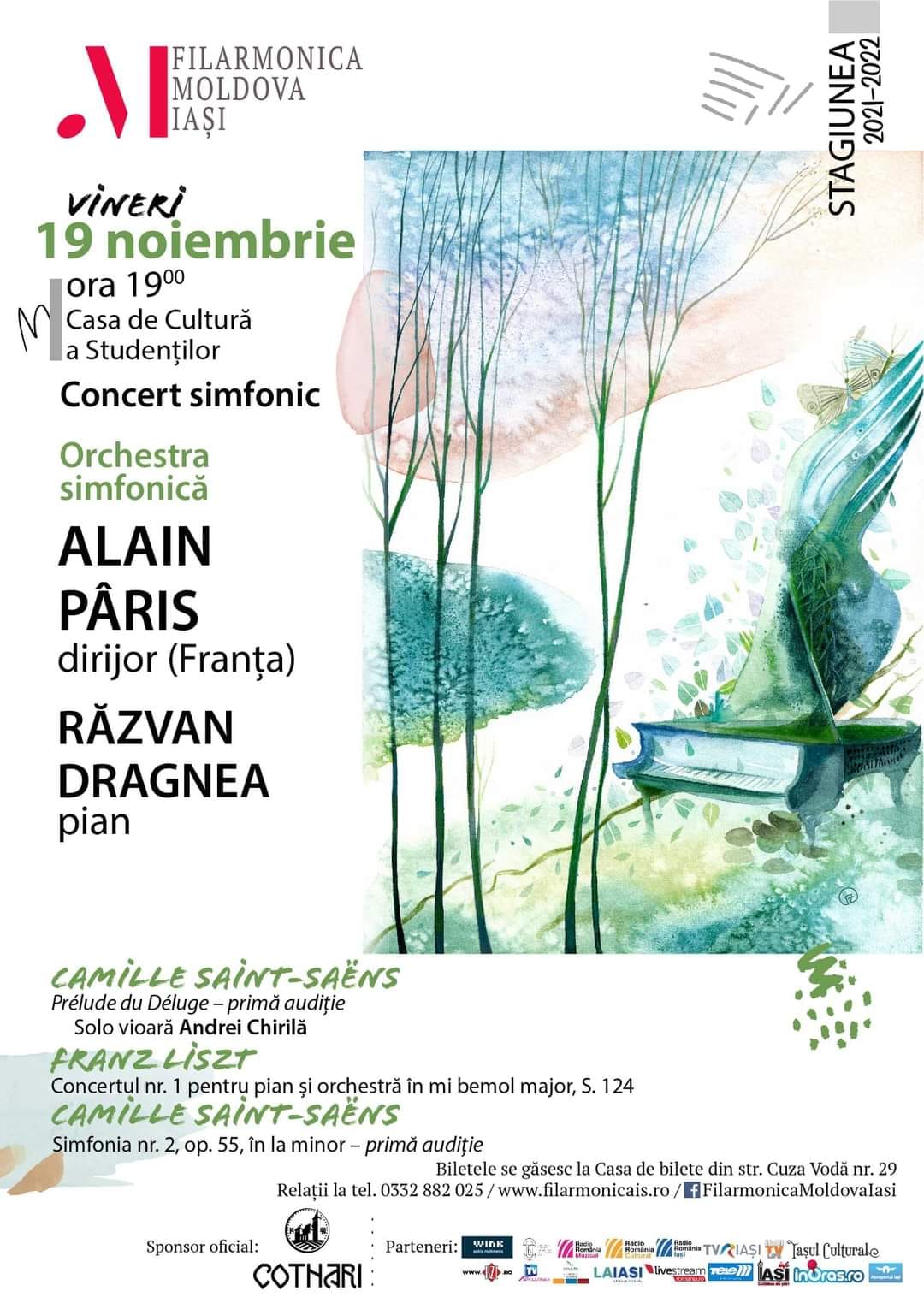 Vineri, 19 noiembrie 2021, ora 19,00, orchestra simfonică a Filarmonicii „Moldova” din Iași va susține la Casa de Cultura a Studentilor Iasi, un concert simfonic sub bagheta dirijorului ALAIN PÂRIS (Franța).