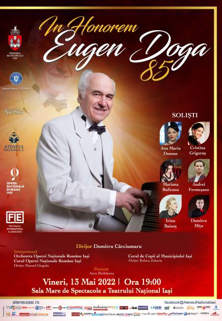 Ateneul Național din Iași vă invită VINERI, 13 MAI 2022, de la ora 19:00 la concertul extraordinar „In Honorem EUGEN DOGA – 85”!