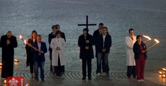 La Vatican, ca niciodată până acum, Drumul Crucii din Vinerea Sfântă a avut loc nu la Colosseum, ca de obicei, ci în fața Bazilicii San Pietro, într-o piață întunecoasă și fără suflare, doar cele două grupuri care duceau crucea: un grup al deținuților, cei ascunşi, nevăzuți de lume, și un altul, al medicilor, cei care se află în prima linie în combaterea acestei pandemii. La final, Papa Francisc, cu chipul transfigurat în fața acestei piețe pustii, s-a retras în tăcere, fără să comenteze ceva.
