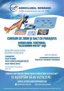 Dacă ai între 15 și 23 de ani, nu rata șansa de a te înscrie la cursurile de zbor și salt gratuite oferite de Aeroclubul României.