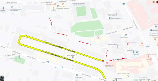 În perioada menționată, traficul rutier pe această stradă va fi oprit, iar autovehiculele vor putea circula pe rutele marcate în schița atașată.