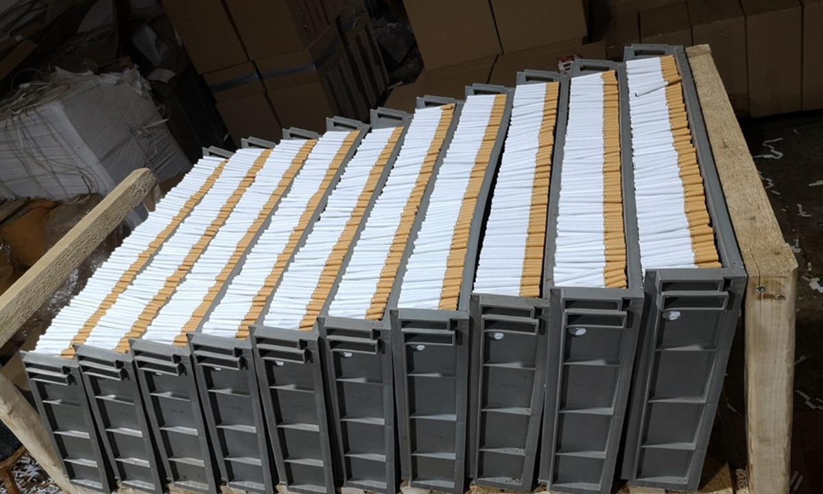 Cu ocazia percheziției domiciliare desfășurată în hala din localitatea Humulești, jud. Neamț a fost identificată fabrica clandestină de producere și ambalare de țigarete contrafăcute, precum şi numeroase pachete de ţigări, importante tutun vrac, o linie de tocat, fermentat, mărunțit și uscat tutun, materiale și materii prime folosite în procesul de producție, asamblare și ambalare a țigaretelor.