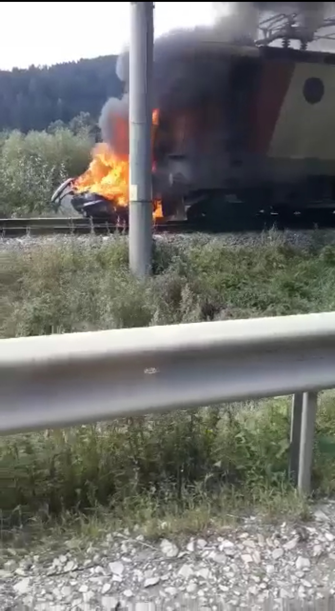 Un tren care circula pe ruta Iași-Brașov a lovit un autoturism, după care a izbucnit un incendiu la locomotivă.