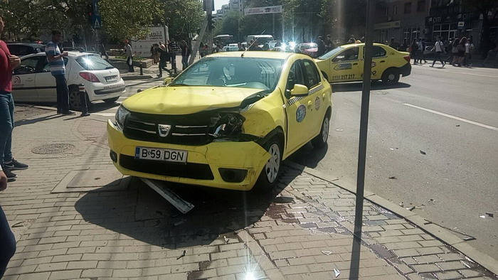 În jurul orei 11:00, două taxiuri s-au ciocnit violent, iar mai mulți studenți au fost la un pas de a fi striviți după ce unul dintre autoturisme a ajuns pe trotuar, scrie ziaruldeiasi.ro.