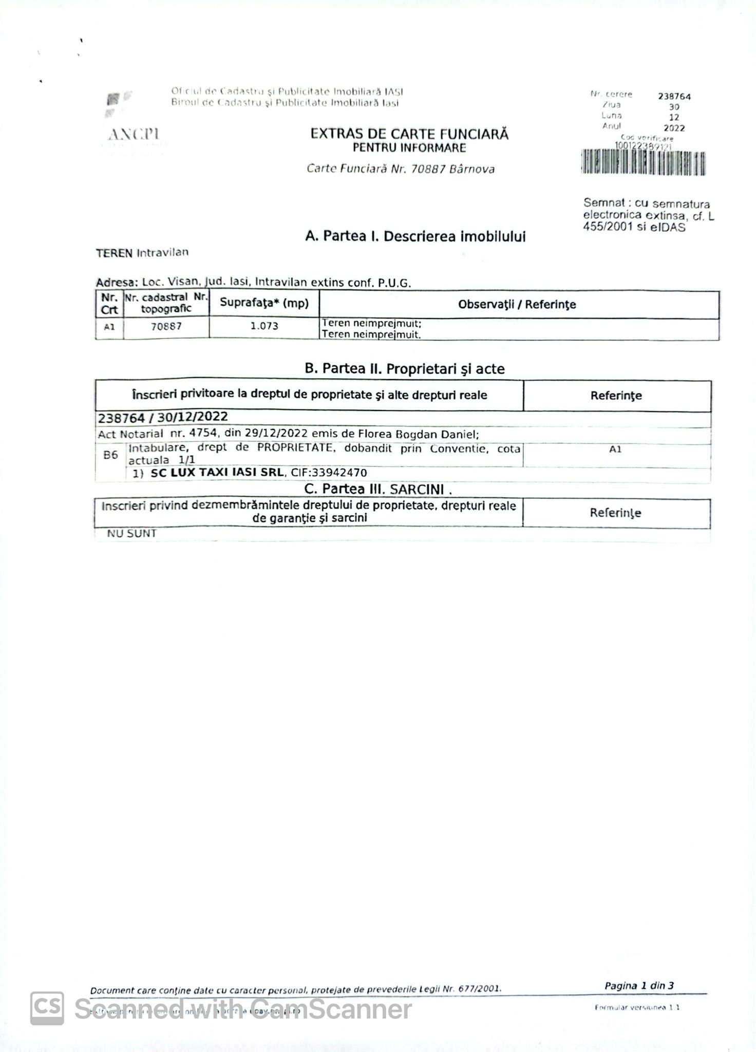 Terenul este intabulat, cu documentație urbanistică completă, oferind siguranță juridică și multiple posibilități de investiție.
