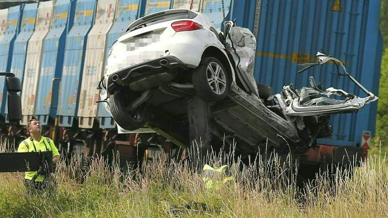 Impactul a fost inevitabil, autoturismul a fost târât peste o sută de metri pe calea ferată, iar cei doi tineri au murit pe loc.