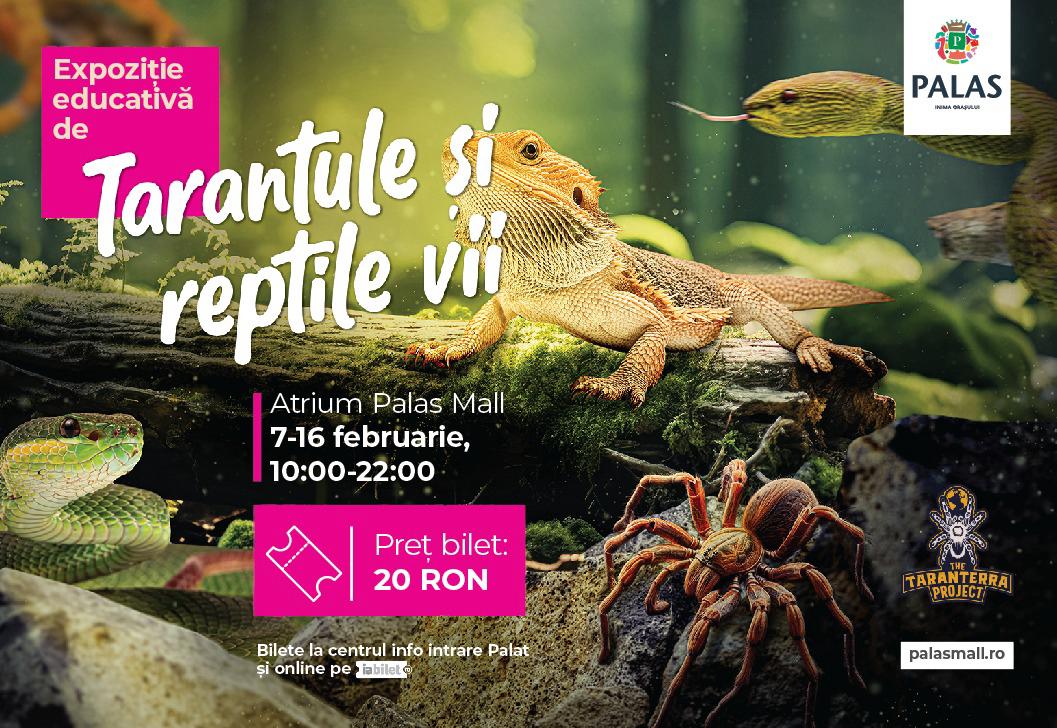 Ai văzut vreodată de aproape o anaconda sau un alt şarpe de mari dimensiuni? Vrei să afli mai multe despre habitatul tarantulelor? Pasionat sau doar simplu curios, eşti aşteptat la Palas, acolo unde va avea loc, în perioada 7 – 16 februarie 2025, o expoziţie tematică ce reuneşte peste 40 de specii de tarantule și 30 de reptile vii.