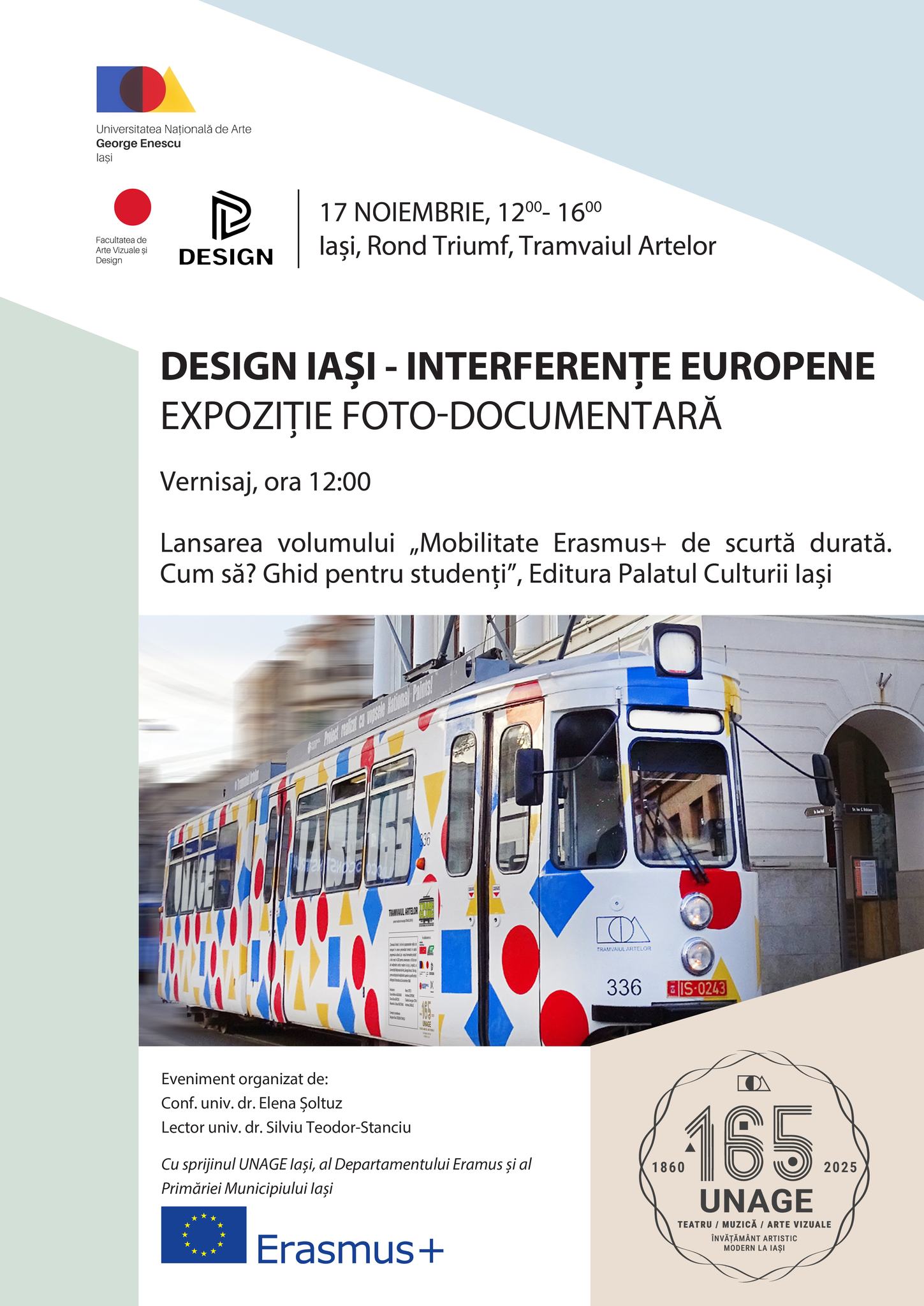Luni, 17 noiembrie 2025, ora 12:00, în Rond Triumf, are loc vernisajul expoziției „Design Iași – interferențe europene”, găzduită de Tramvaiul Artelor.