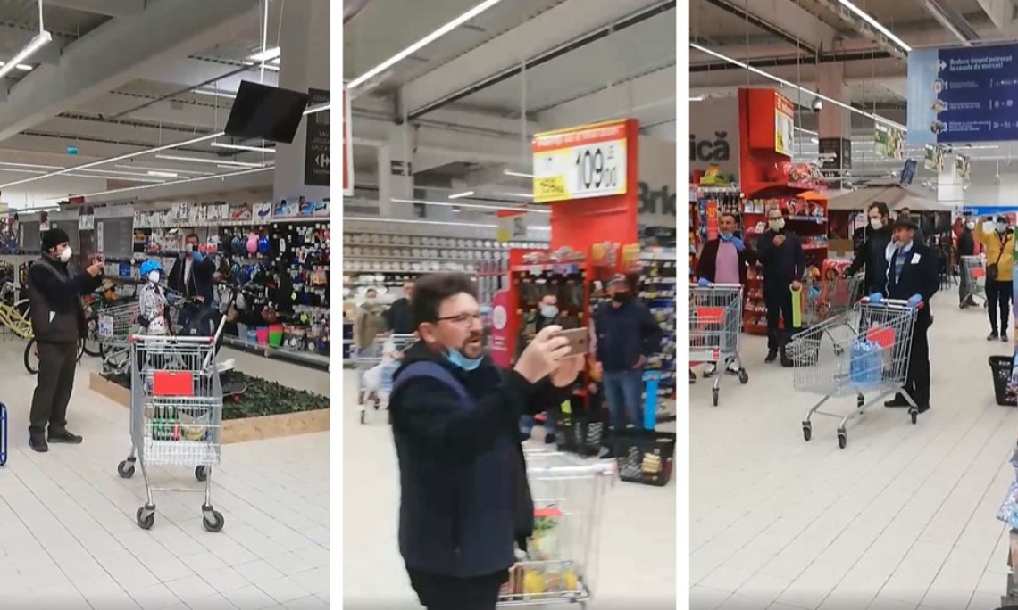 Cu mâinile pe cărucioarele cu ultimele cumpărături înainte de Paște, clienții s-au alăturat imediat primelor voci care s-au auzit peste anunțurile din stația de amplificare a magazinului.