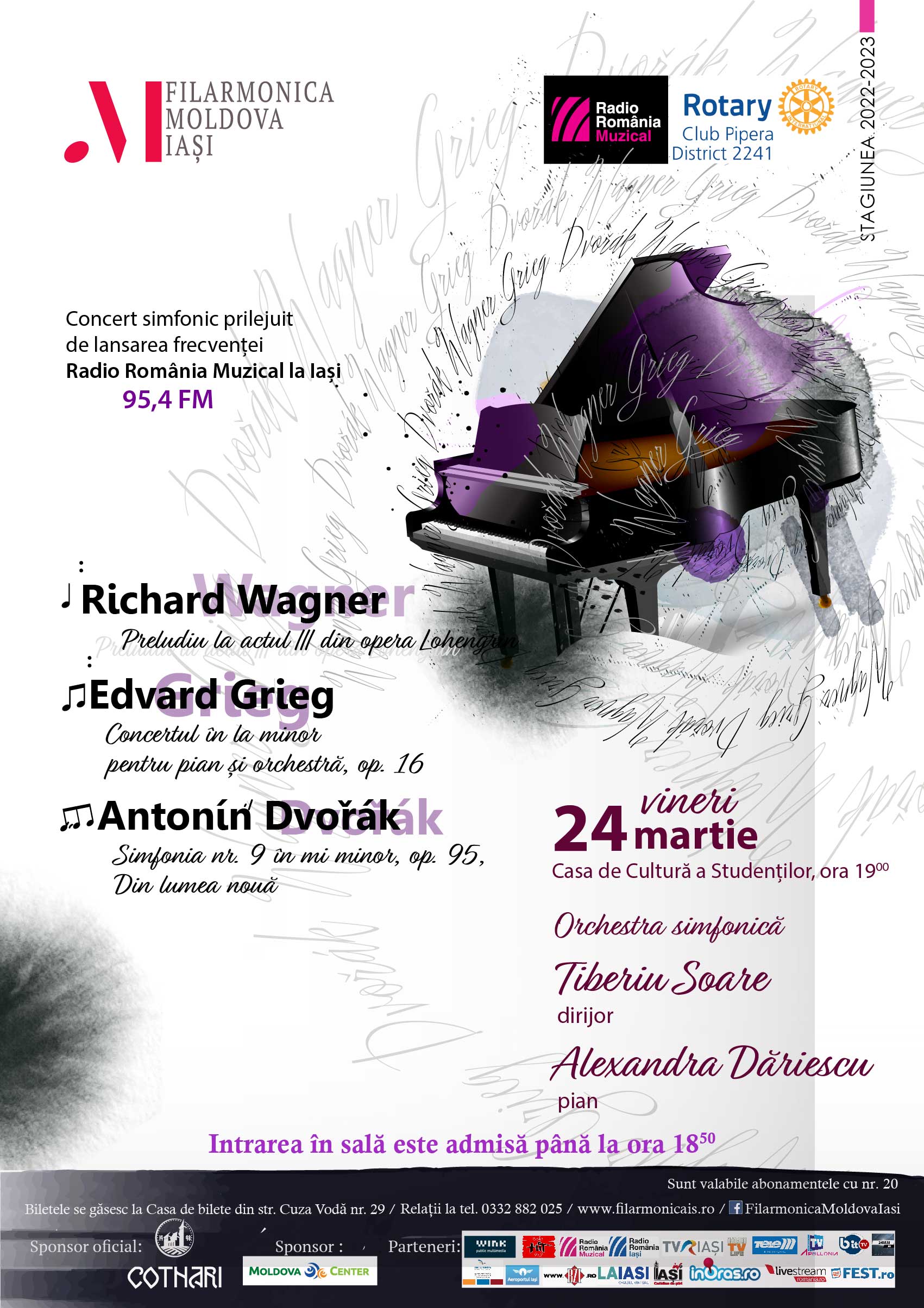 Filarmonica MOLDOVA Iași în parteneriat cu SOCIETATEA ROMÂNĂ DE RADIODIFUZIUNE vă invită VINERI, 24 martie 2023, la concertul simfonic prilejuit de lansarea frecvenței RADIO ROMÂNIA MUZICAL la IAȘI 95,4 FM!