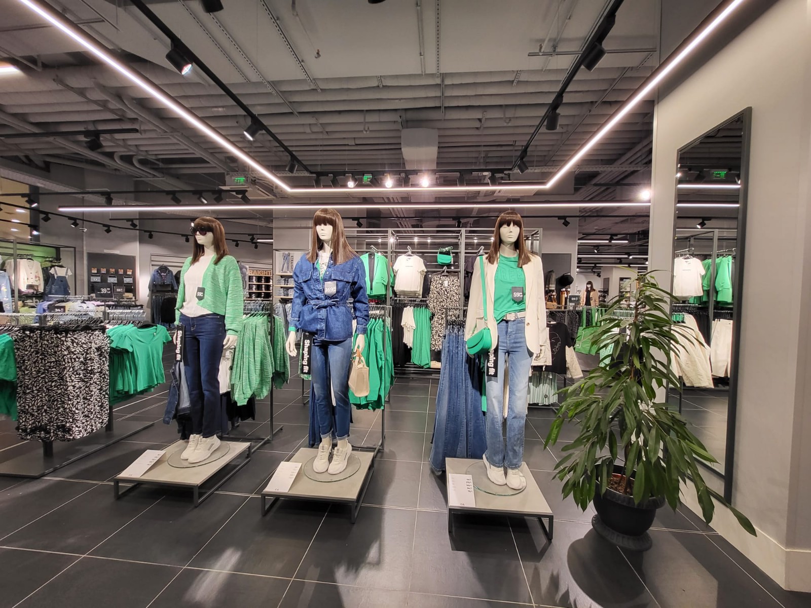 Noul magazin C&A are o zonă dedicată articolelor din denim pentru bărbați și femei. Semnalizările și manechinii oferă informații detaliate despre tipurile de croieli disponibile pentru aceste produse atât de versatile.
