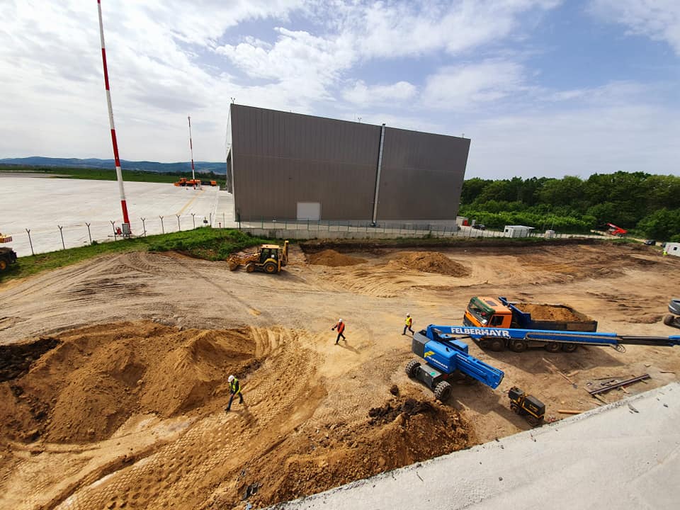 La acest moment se amenajează platforma de staționare a aeronavelor, unde vor fi realizate viitoarele aviobridge-uri.