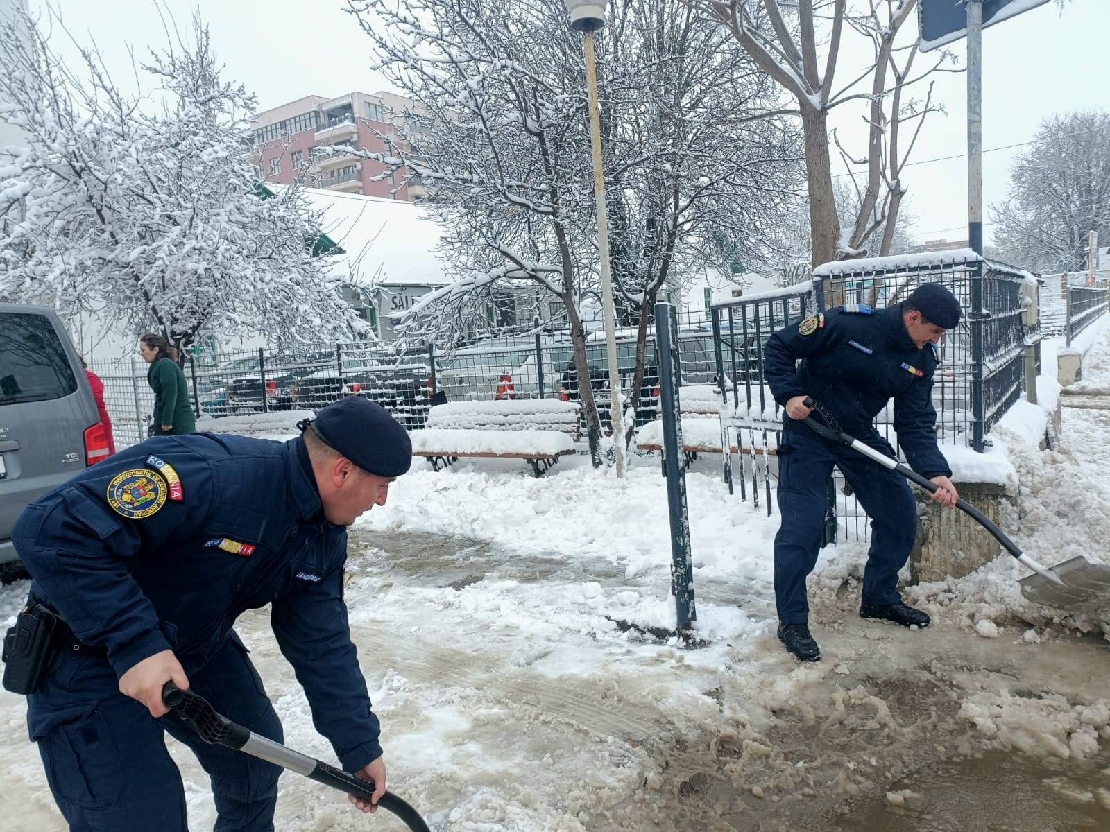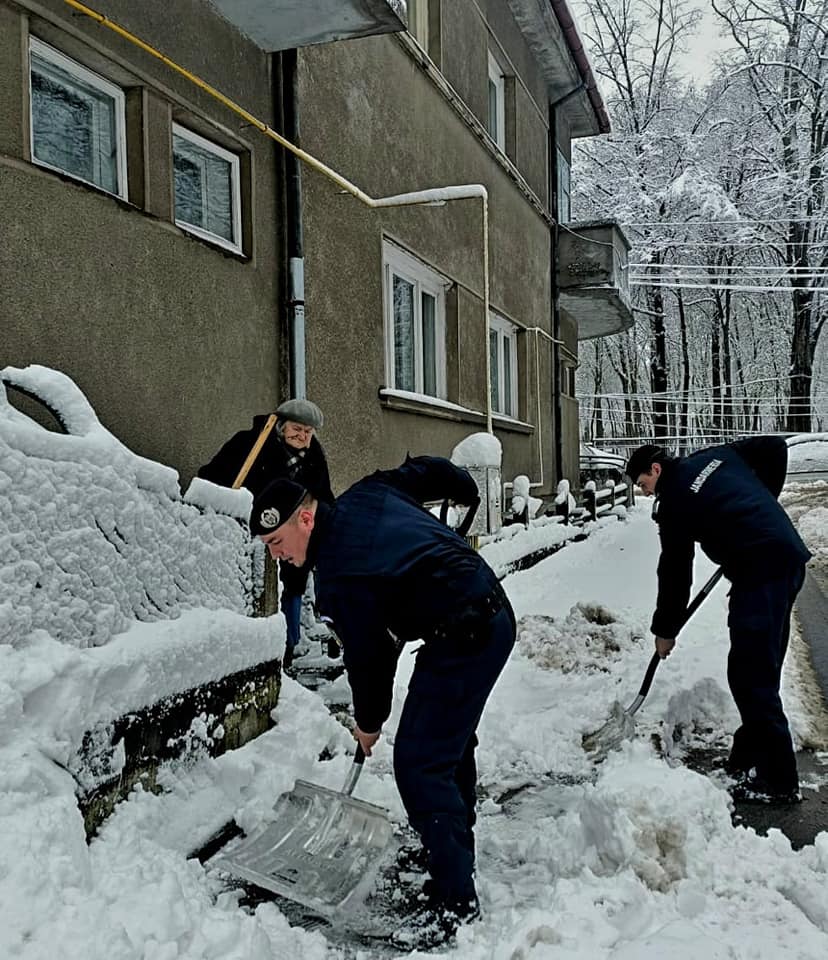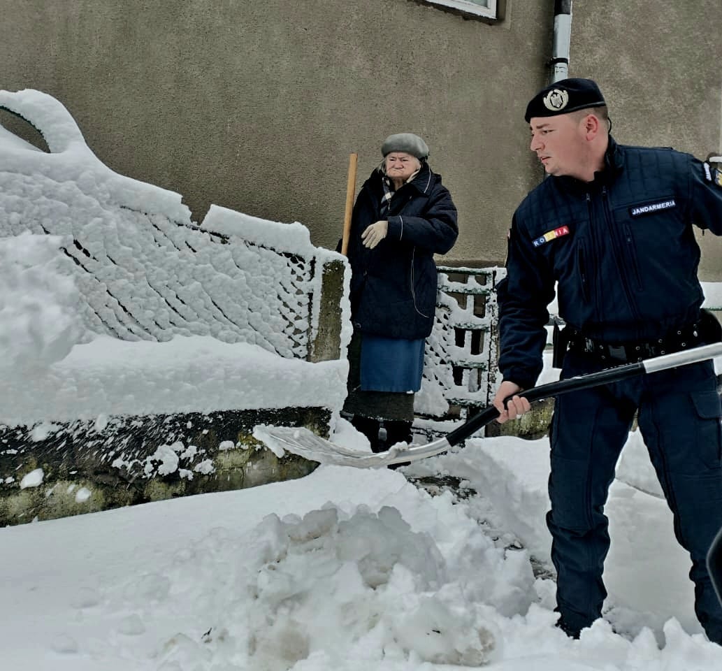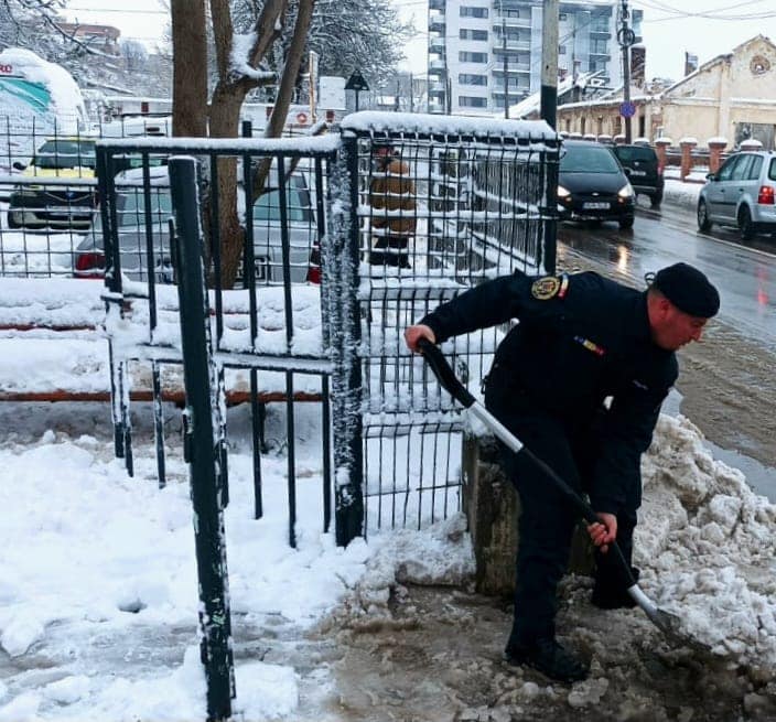 FOTO: Sute de jandarmi deszăpezesc în Iași: ”Vă recomandăm să evitați deplasările în spațiul exterior”