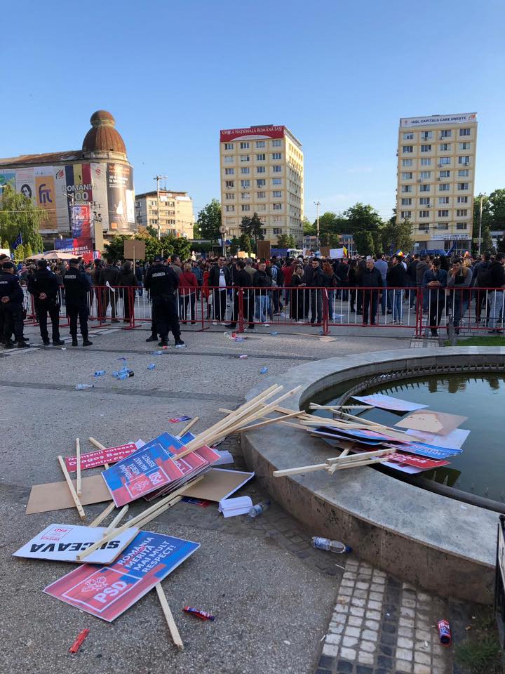 La distanță de ei, după două garduri și două cordoane de jandarmi, au fost ieșenii. Mulți și ei, aproape la fel de mulți ca susținătorii PSD, familii întregi venite pe jos, (de mașini nu se punea problema, orașul fiind paralizat de autocarele parcate peste tot), din toate colțurile Iașiului, mulți tineri, dar nu numai, cu aceeași convingere în privința viitorului țării noastre. Ei știau de ce sunt acolo.
