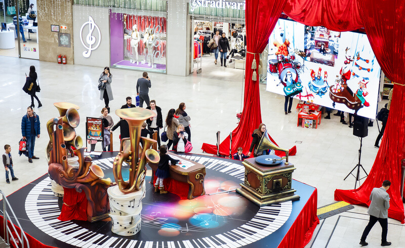 În luna decembrie, principala atracție pentru prichindei în Palas Mall este scena specială, amenajată în proximitatea bradului din Atrium. Copiii pot urca pe podium, iar ca prin magie, se vor vedea pe un ecran gigant, de 4,5 metri lățime și 3 metri înălțime, alături de alți „muzicieni”. Ei vor fi dirijorii formației aflate în concert, formată dintr-un urs polar, o vulpe, un pinguin, un ren și trei veverițe. Cu ajutorul unor butoane, vor decide cum și cât cântă amicii lor virtuali, combinând astfel sunete de muzică electronică, pian, saxofon, percuție și backing vocals. La final, vor putea descărca de pe palasmall.online o fotografie și melodia compusă în trupa Moșului.