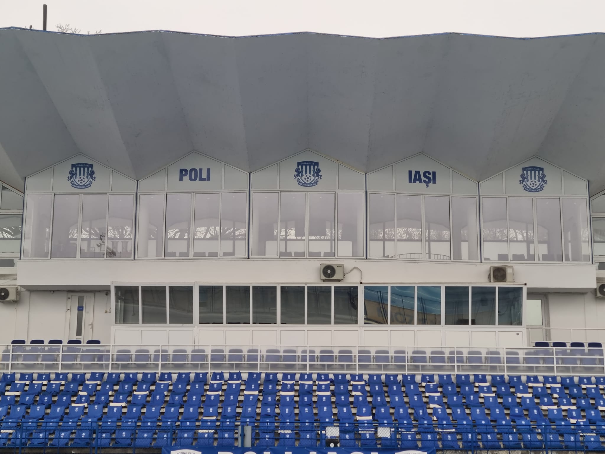 Tribuna Oficială a Stadionului „Emil Alexandrescu” este, acum, una potrivită pentru jocurile din primul eșalon, cel puțin. După ample lucrări de renovare efectuate în anul trecut, când a fost refăcută izolația, tencuiala, înlocuită tâmplăria veche cu una modernă din aluminiu și recompartimentate spațiile existente, săptămâna trecută s-au încheiat și lucrările pentru închiderea înspre teren a tribunei, tot cu tâmplărie din aluminiu și geamuri special tratate.
