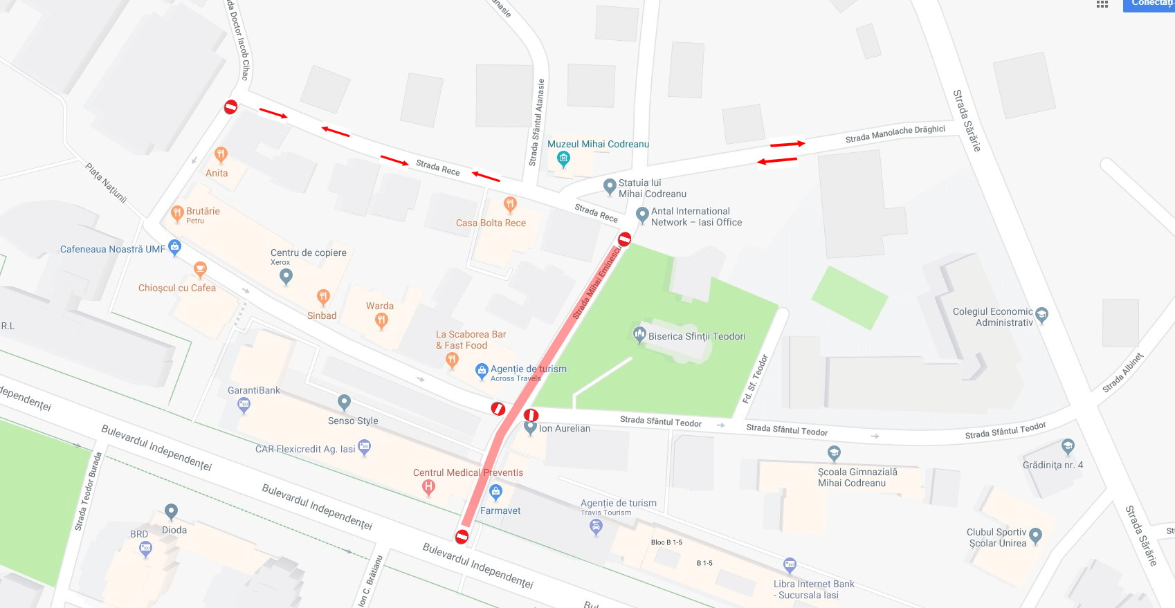 În perioadele menționate, traficul rutier pe aceste străzi va fi oprit, iar autovehiculele vor putea circula pe rutele marcate în schițele atașate.