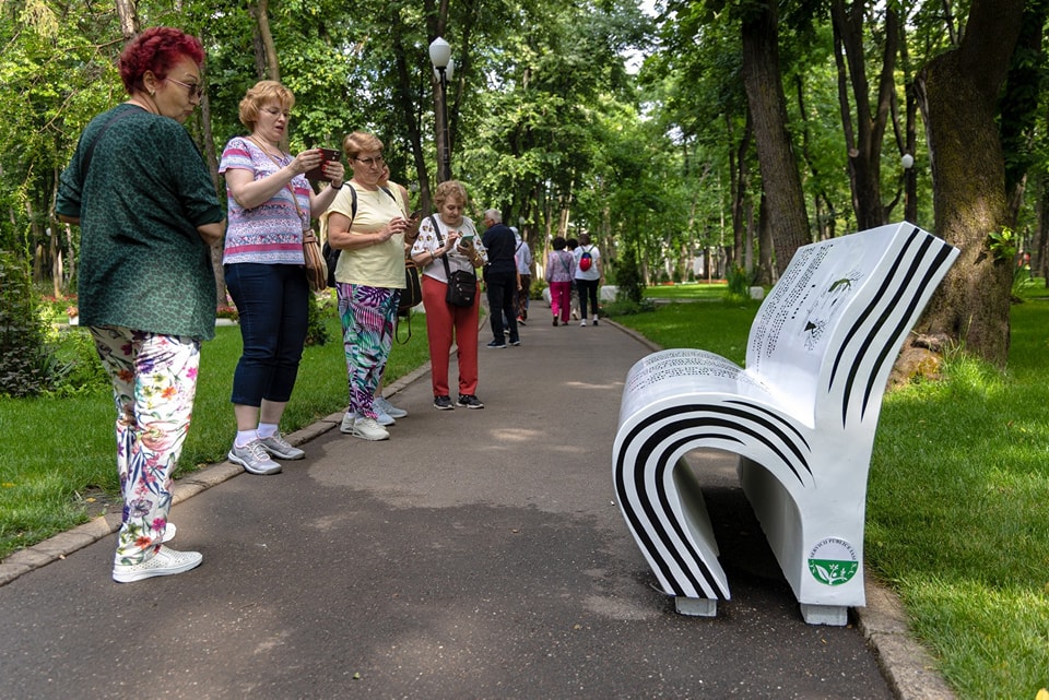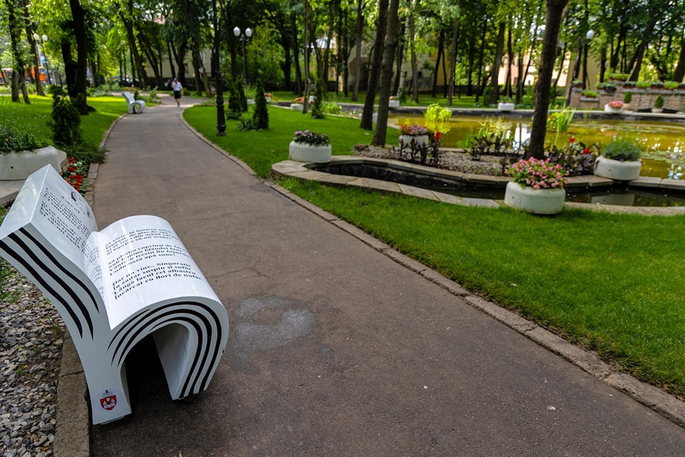 În Parcul Copou (în preajma statuii și Teiului lui Mihai Eminescu, respectiv lângă bazinul cu nuferi) și la Plopii fără Soț din Bucium, echipele Servicii Publice SA au montat băncile de tip carte (făcute din mozaic din marmură) imprimate cu poeziile „Glossă”, „Lacul” și „Pe lângă Plopii fără Soț” scrise de Mihai Eminescu.