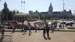 Sindicaliștii SANITAS Iași au ieșit în această dimineață, la protest în fața Prefecturii. Ei spun că legea salarizării a creat haos în spitalele ieşene, întrucât mulţi angajaţi primesc mai puţini bani faţă de luna trecută.