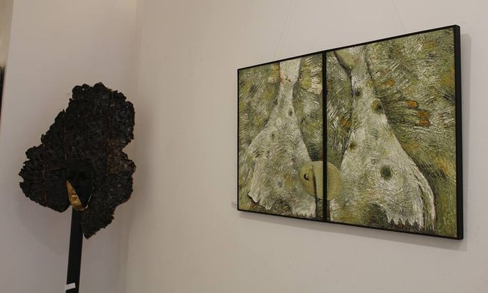 În vernisajul de sâmbătă seara, artistul Leontin Păun a expus cinci lucrări, printre care merită să evidențiem ”Copilăria”, ”Moartea”și ”Sis”. Sunt lucrări care continuă seria din astă-primăvară, când artistul a mai organizat o expoziție de artă, și anume cea a personajelor și a măștilor care dezvăluie cel mai bine tema copilăriei: o lume a fragilității, a bunătăii, dar mai ales a creativității.