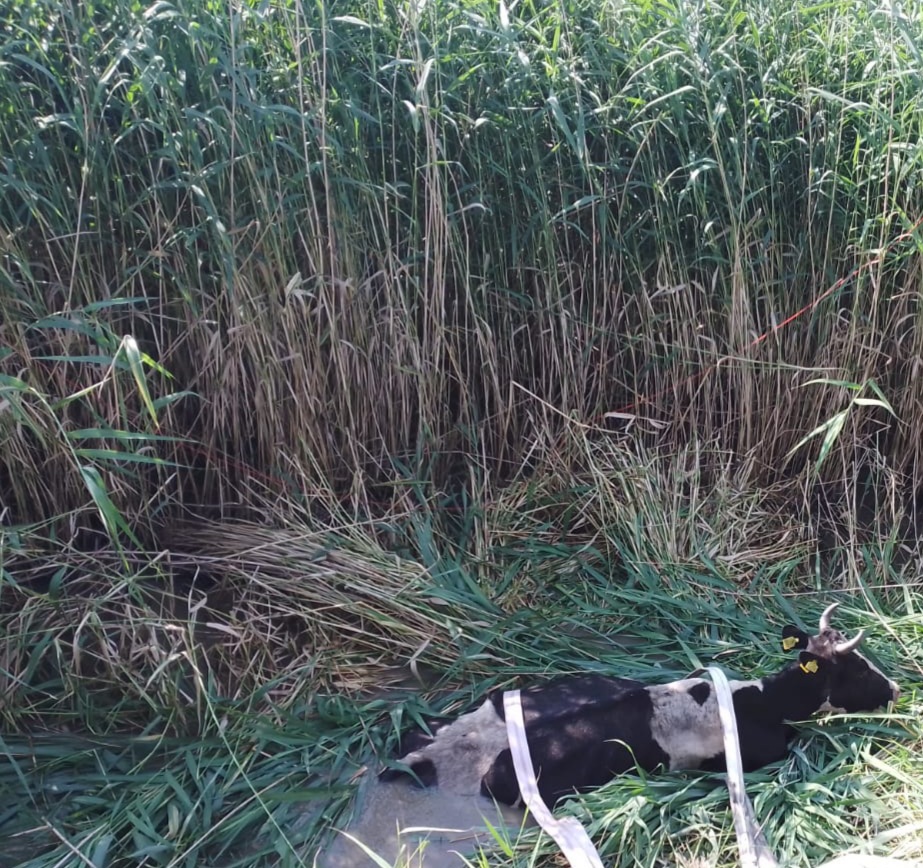 Pompierii militari din cadrul Detașamentului Bârlad, Punctul de lucru Murgeni, au intervenit pentru salvarea unei bovine căzute într-un canal situat între localitățile Raiu și Giurcani.