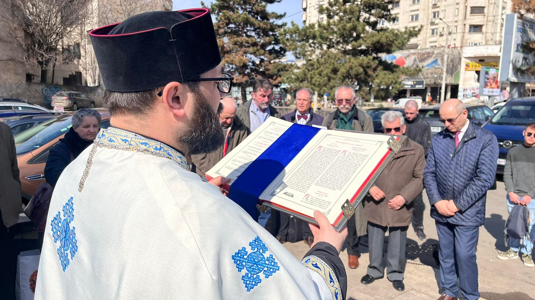 A început cu slujba de pomenire, săvârșită de pr. protopop Florin Călugăru, ca reprezentant al Mitropoliei Moldovei şi Bucovinei, cu sprijinul pr. paroh Doru-Mihai Barna, după care a urmat depunerea de coroane și flori la monument.