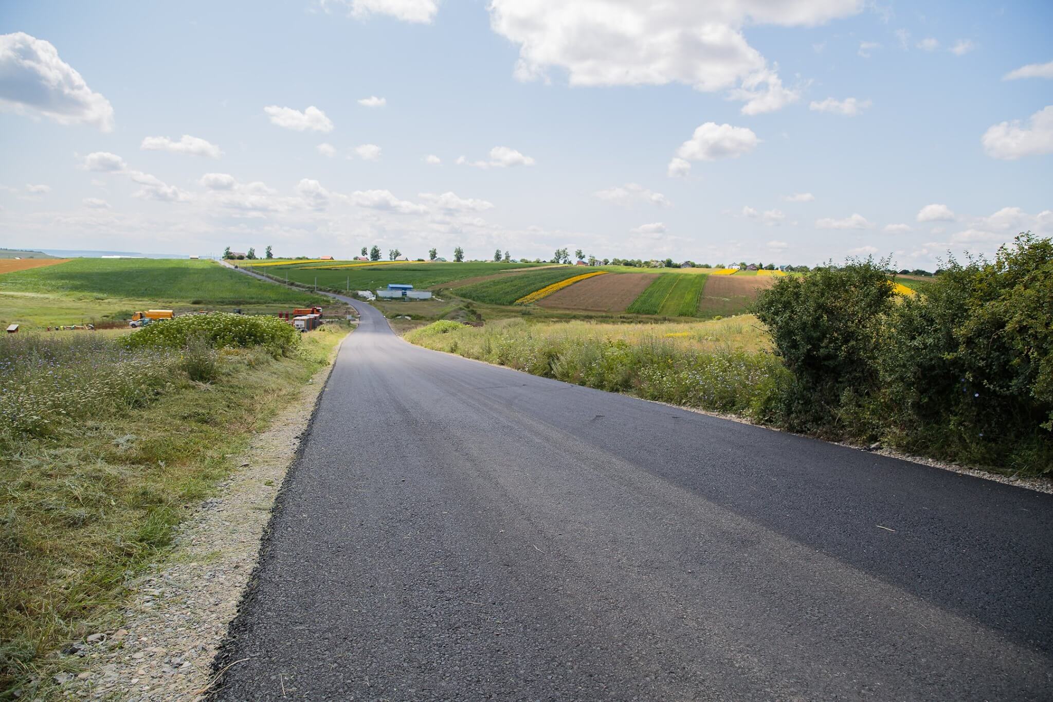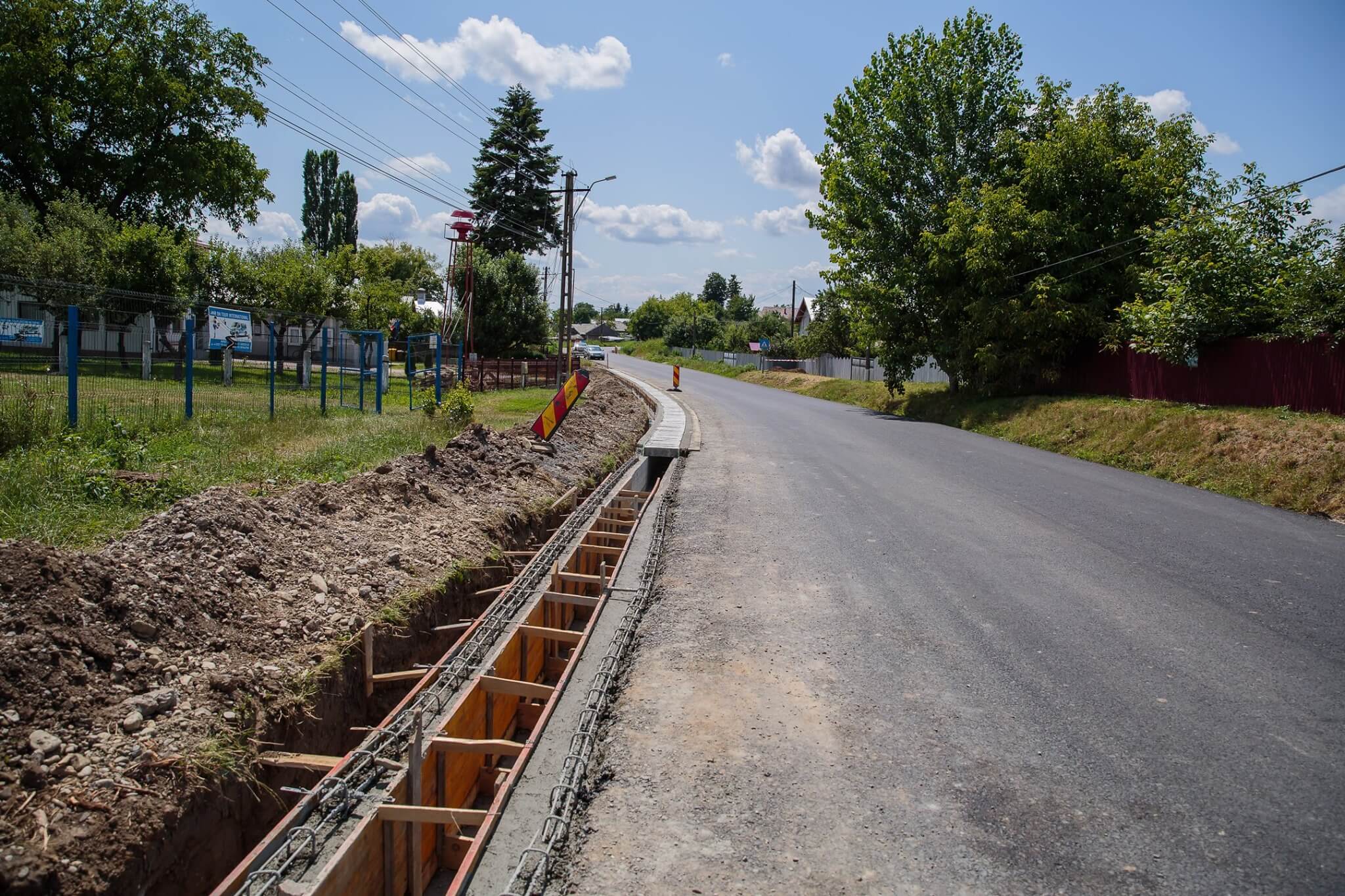 După finalizarea lucrărilor la șanturi, executantul va începe turnarea stratului de uzură a drumului.