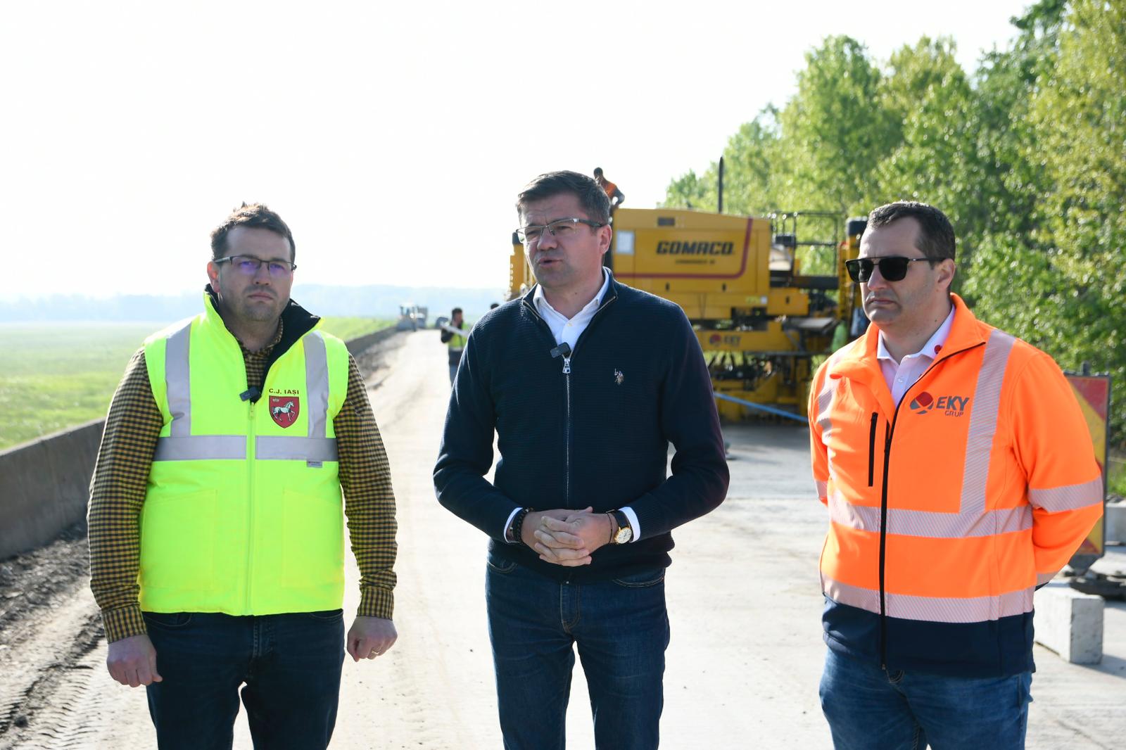 Urmează execuția drumurilor laterale, a șanțurilor și a accesului la proprietăți, precum și semnalizarea verticală și orizontală, astfel încât, în luna septembrie, drumul să fie complet modernizat.
