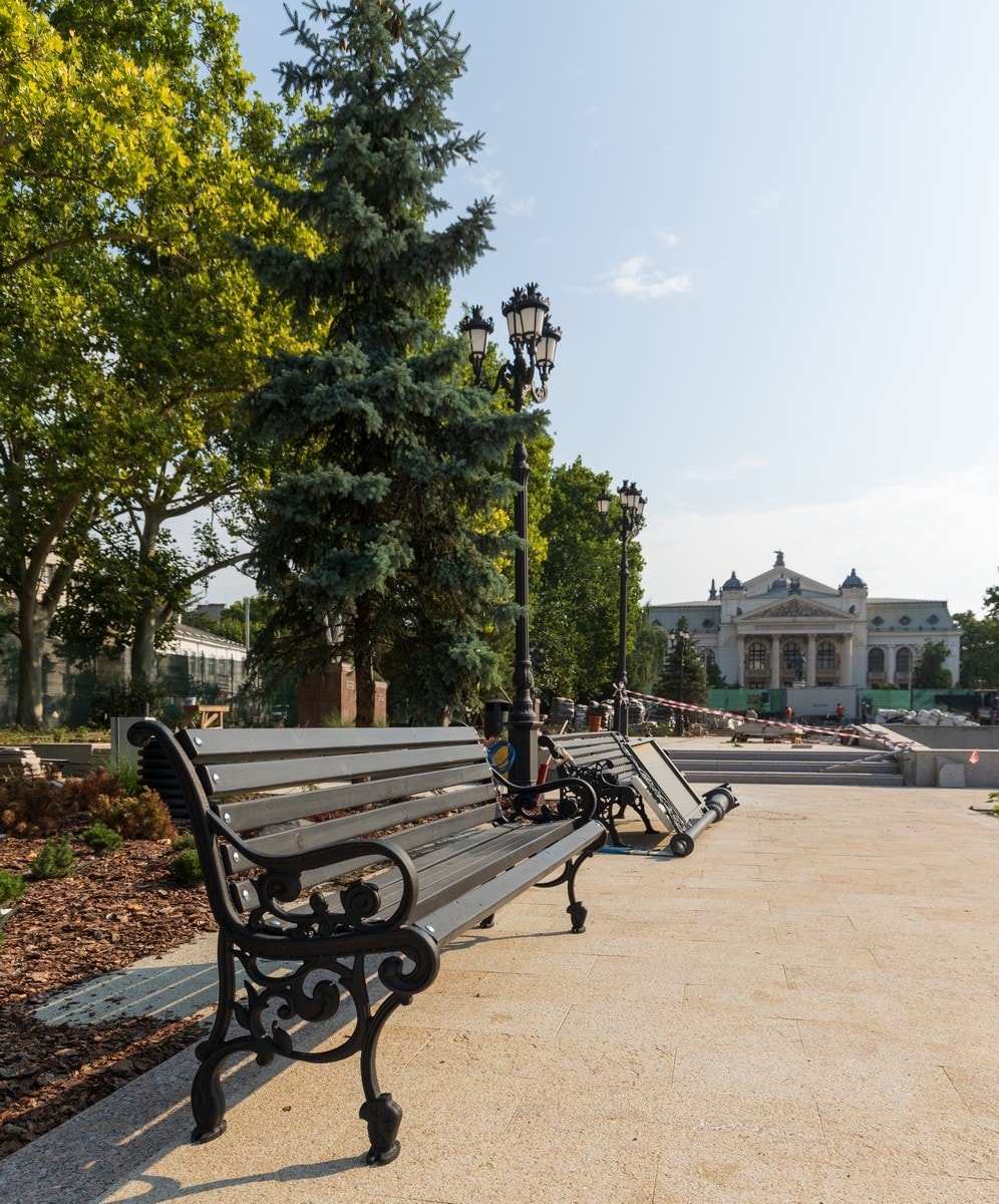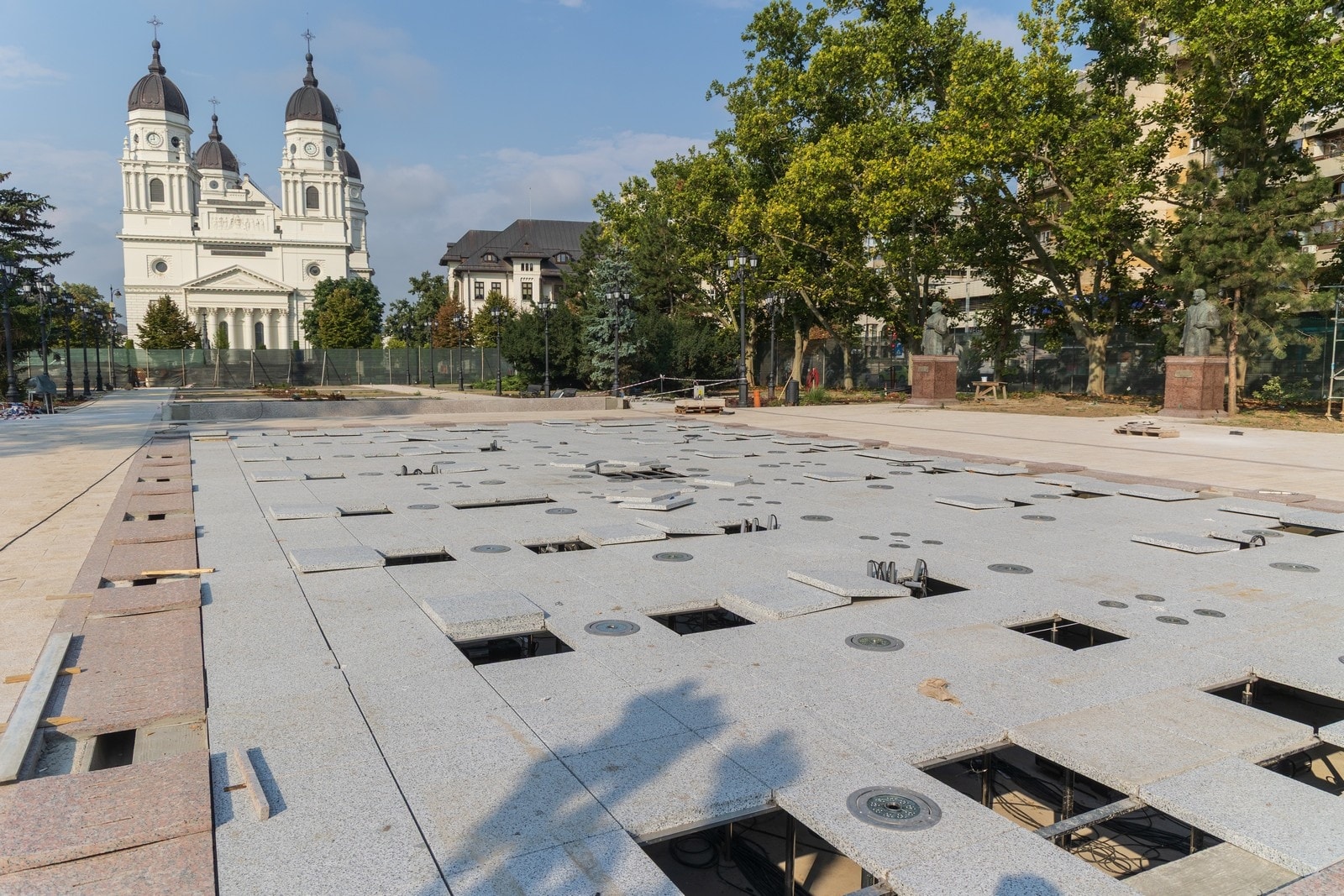 Am finalizat montarea plăcilor de marmură și granit – toate de calitate! – care îmbracă aleile pietonale și amfiteatrul, mobilierul urban (băncile, coșurile de gunoi) și sistemul de iluminat. De asemenea, continuă lucrările la fântâna arteziană. Vestigiile valoroase sunt conservate și protejate și vor fi puse în valoare în cadrul unui muzeu. DE asemenea, am adus și am montat statuile pe soclurile refăcute.
