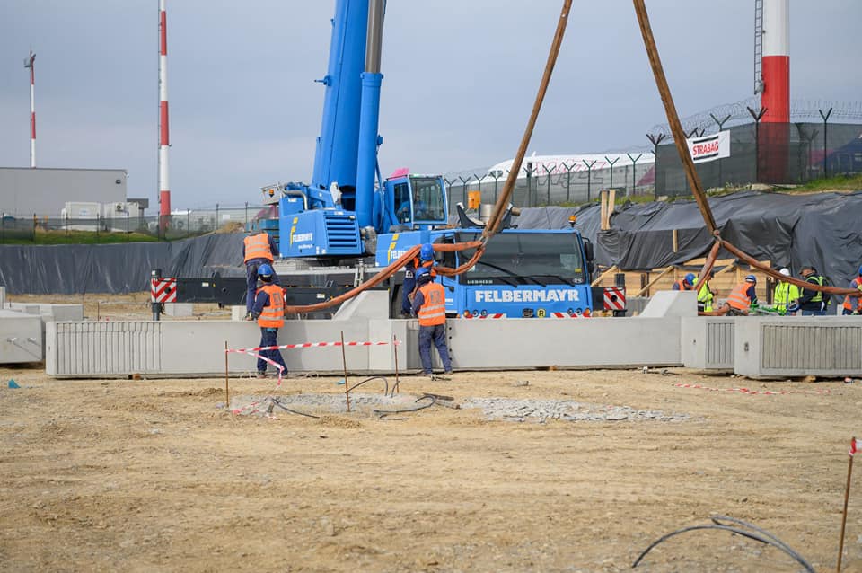 În această etapă a proiectului, o echipă de aproximativ 50 de persoane este mobilizată pe șantierul de la T4, unde se lucrează la fundația viitorului terminal.