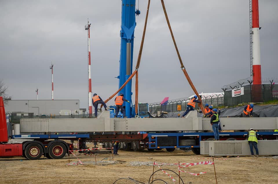 Construcția fundațiilor se realizează pe 120 de piloți forați. Astăzi a fost prima zi de descărcare a stâlpilor și montarea lor pe poziție.