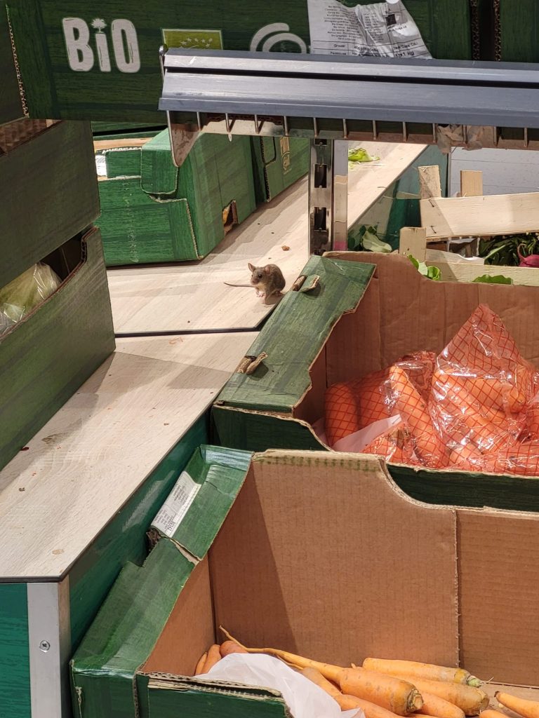 Autoritățile au pus la dispoziție și o fotografie care arată clar prezența șoarecilor în incinta magazinului.
